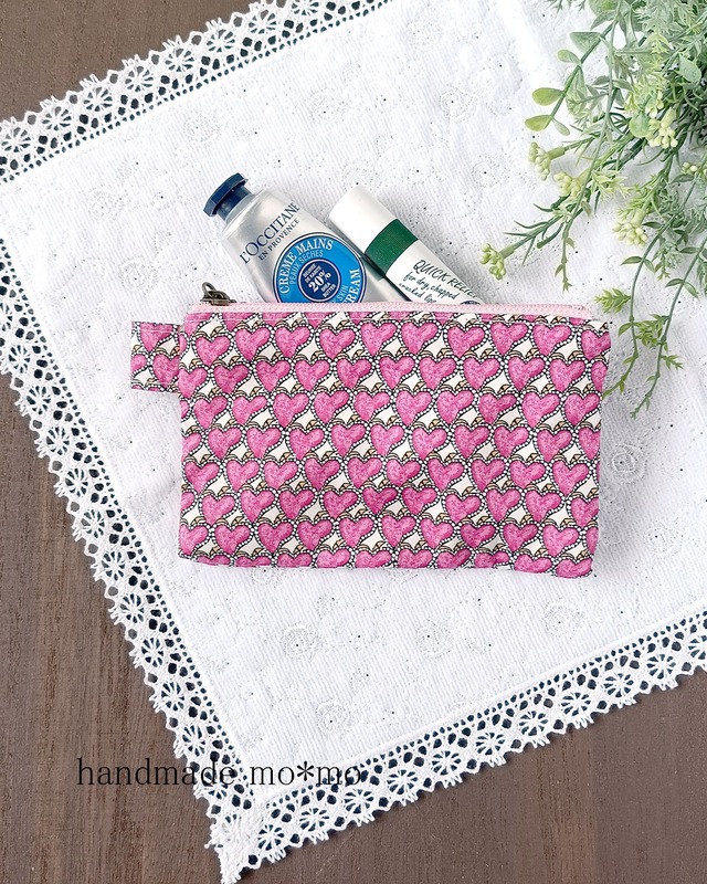 人気の小さなポーチのシリーズの マチありタイプです。 イベントで少しだけ販売したことがあったのですが、 もう作らないのですか?とリピートのお客様からご要望がありました。 ラミネートのリバティで作った便利なポーチです。 小さくても丁寧に内布をつけています。 10cmファスナーでアクセサリーの収納や持ち運び、一時置き場としても。 小銭入れにしてもかわいいですね。 イヤホンや、お薬、あめちゃんなど、小さなものにぴったりです。 プチプレゼントとしてもおすすめです。 <表生地について> ラミネートのリバティ生地を使用。リバティプリント定番の高級素材タナローンに、つや消しでマットなフィルムを貼り付けた、ラミネート生地使用。 汚れたら拭きとれます。除菌スプレーや除菌シートで拭けるのもうれしいですね。 コーティングしてありますが、やわらかく、さらっとした手ざわりが特徴の大好きな素材です。 <作品に使用したリバティプリントの柄について> 2024年春夏の季節柄である、ペイザンヌブロッサムは 繊細な花の中にジューシーなストロベリーを散りばめた、爽やかで甘くフルーティーなボタニカルデザインです。 ペイザンヌを縮小した柄なのですが、一部同じではない部分があるそうです。 リバティ:ペイザンヌ・ブロッサム 内布:綿麻キャンバス クラシックピンク サイズ:縦約6cm×横7.5 cm(タブ含まず) マチ3cm ファスナーは10cmです。