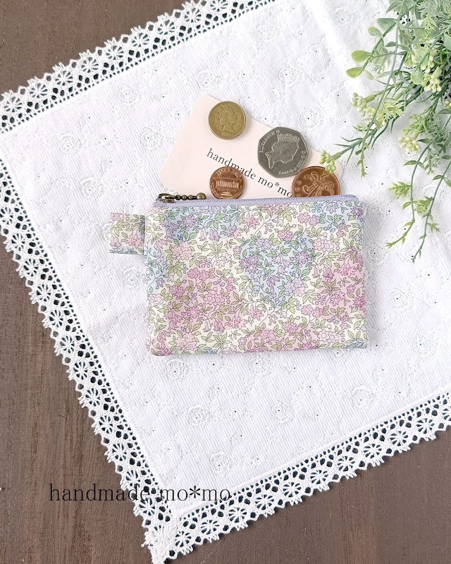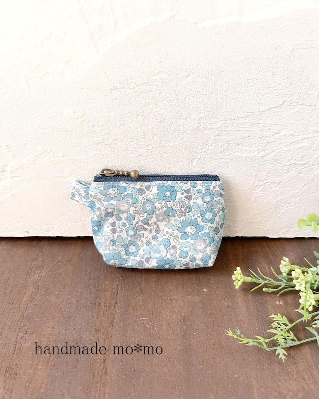 人気の小さなポーチのシリーズの マチありタイプです。 イベントで少しだけ販売したことがあったのですが、 もう作らないのですか?とリピートのお客様からご要望がありました。 ラミネートのリバティで作った便利なポーチです。 小さくても丁寧に内布をつけています。 6cmファスナーでアクセサリーの収納や持ち運び、一時置き場としても。 小銭入れにしてもかわいいですね。 イヤホンや、お薬、あめちゃんなど、小さなものにぴったりです。 プチプレゼントとしてもおすすめです。 <表生地について> ラミネートのリバティ生地を使用。リバティプリント定番の高級素材タナローンに、つや消しでマットなフィルムを貼り付けた、ラミネート生地使用。 汚れたら拭きとれます。除菌スプレーや除菌シートで拭けるのもうれしいですね。 コーティングしてありますが、やわらかく、さらっとした手ざわりが特徴の大好きな素材です。 <作品に使用したリバティプリントの柄について> リバティプリント ベッツィ・アン は、 2013年秋冬コレクション最後のテーマ:リバティが誇る様々な花のスタイルを集約した 「センス・オブ・リバティ」の中の1柄で、1933年に制作され、 リバティのクラシック柄として有名な「Betsy(ベッツィ)」の縮小版です。 リバティ:ベッツィアン 内布:綿麻キャンバス きなり サイズ:縦約4.5cm×横5 cm(タブ含まず) マチ2cm ファスナーは6cmです。
