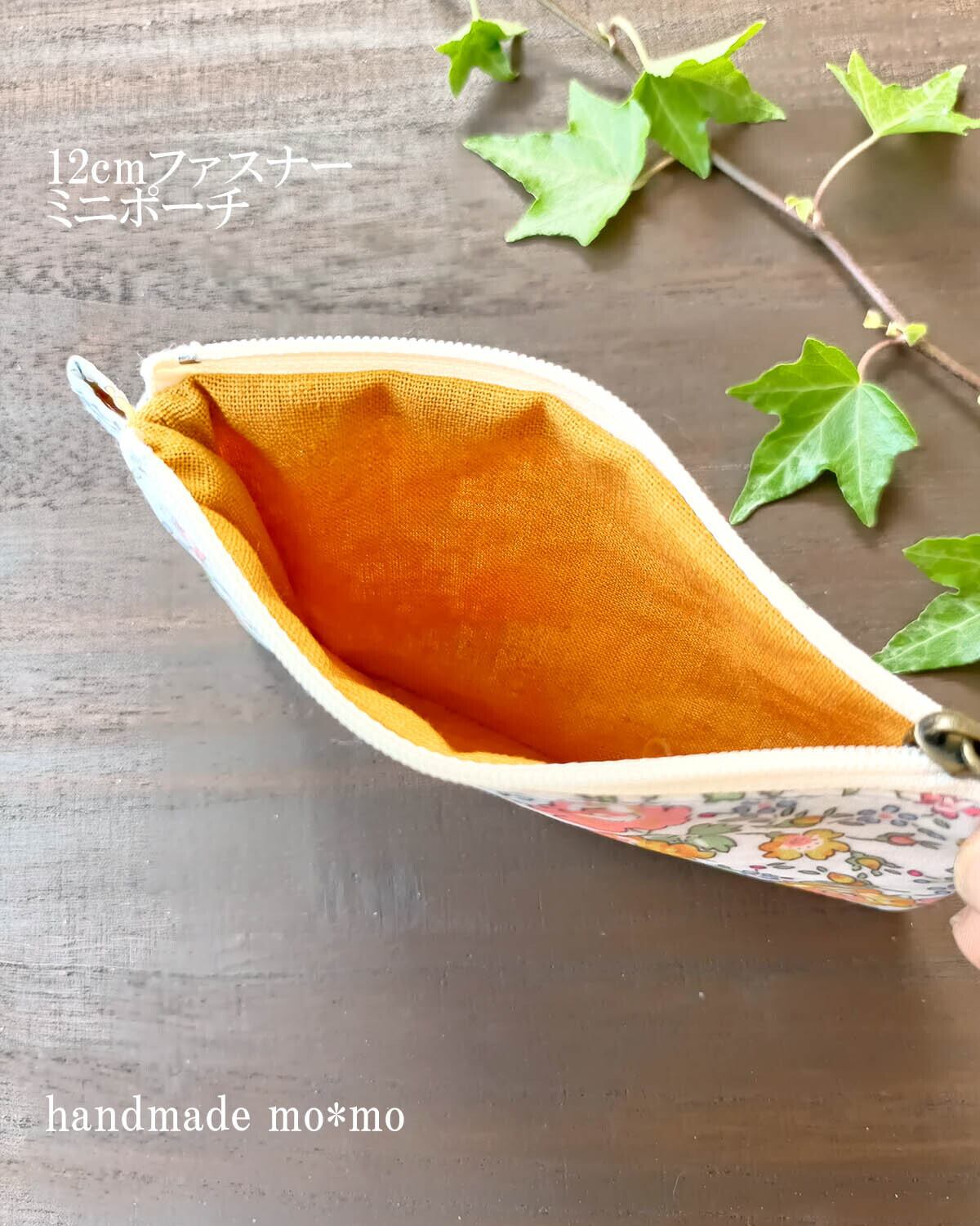 7枚目:ミニポーチシリーズとして、ファスナー12cm、10cm、8cmの3サイズを出品しています。