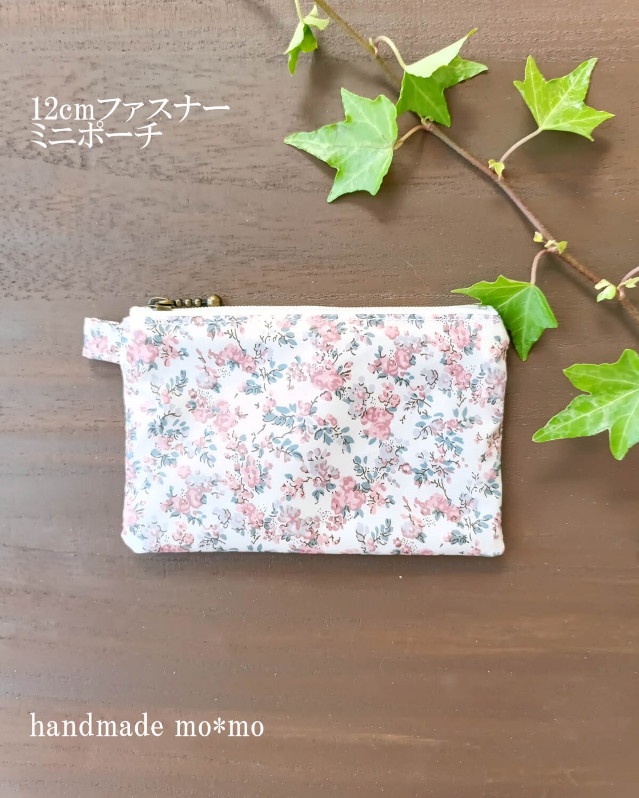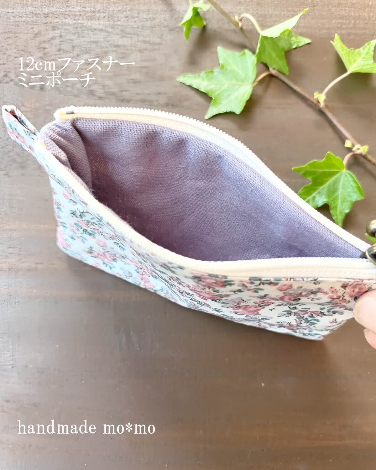 7枚目:ミニポーチシリーズとして、ファスナー12cm、10cm、8cmの3サイズを出品しています。