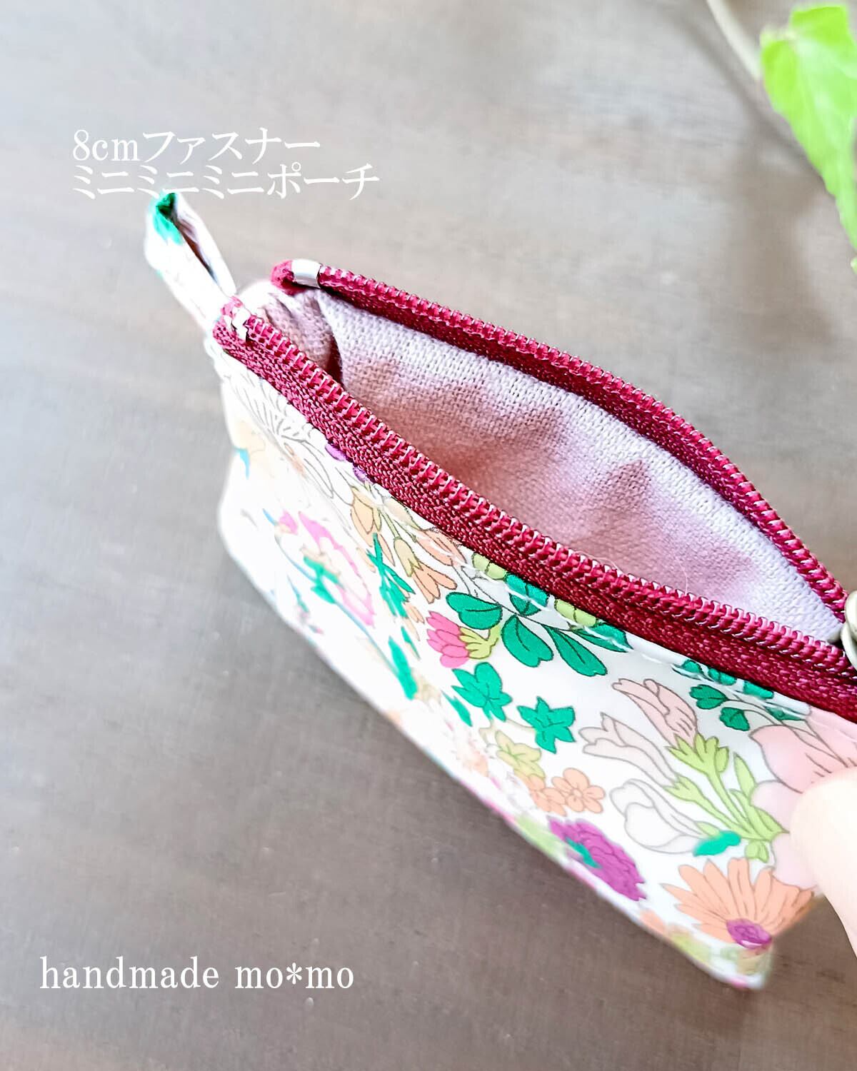 8cmファスナーの手のひらにのるくらいの、小さなポーチです。