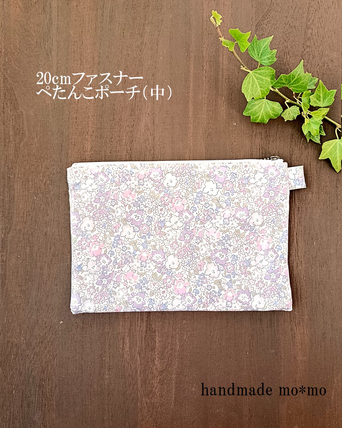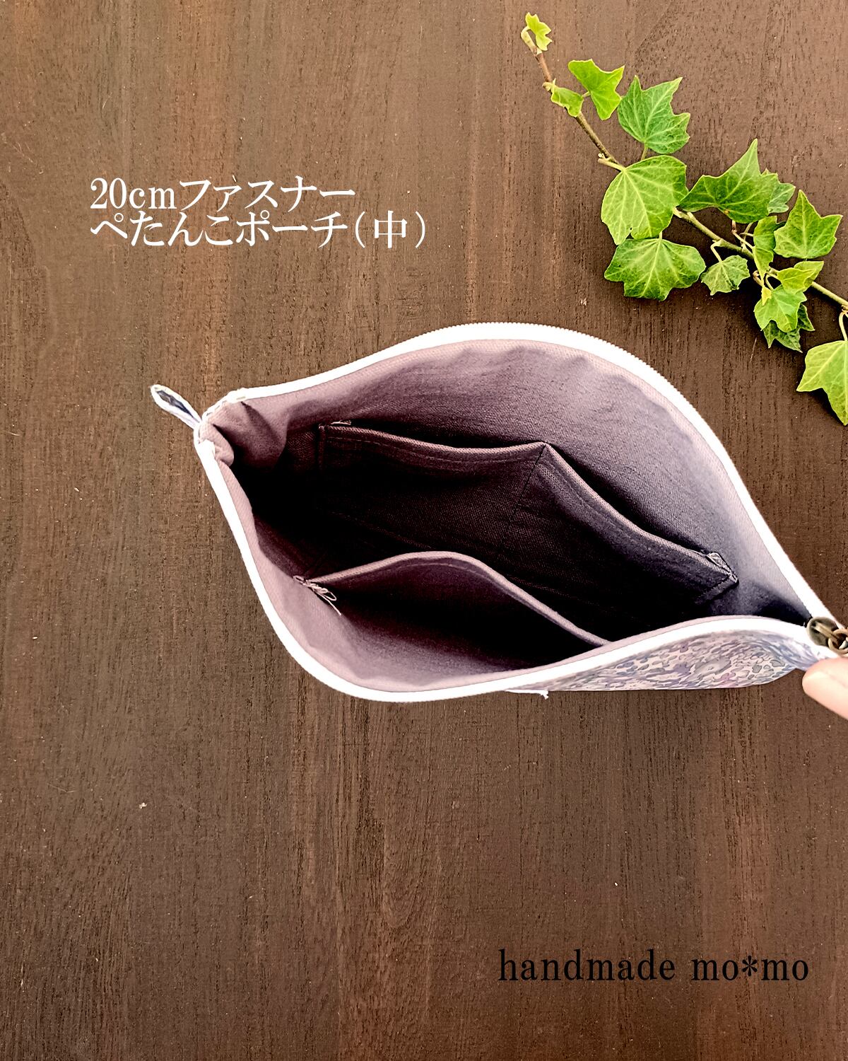 6枚目:3つのサイズのぺたんこポーチを作っています。こちらの作品は真ん中のサイズです。