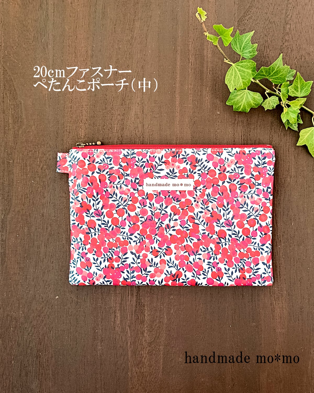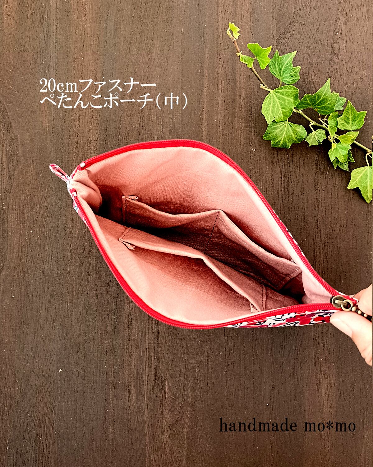 6枚目:3つのサイズのぺたんこポーチを作っています。こちらの作品は真ん中のサイズです。