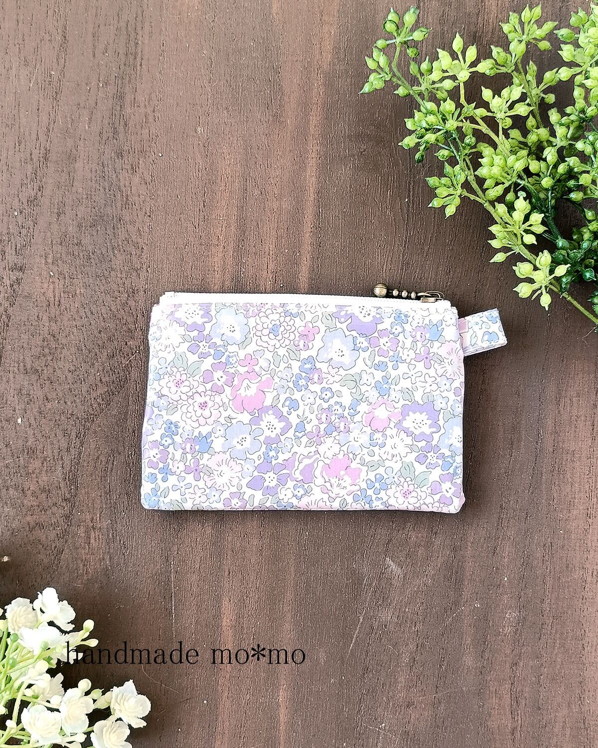 ラミネートのリバティ生地を使用。リバティプリント定番の高級素材タナローンに、つや消しでマットなフィルムを貼り付けた、ラミネート生地使用。
