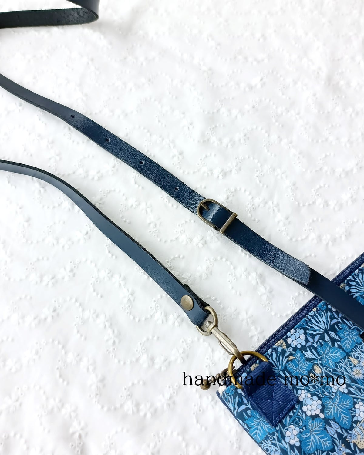 わけは、ショルダー紐を作るための長さの生地が確保できなかったため