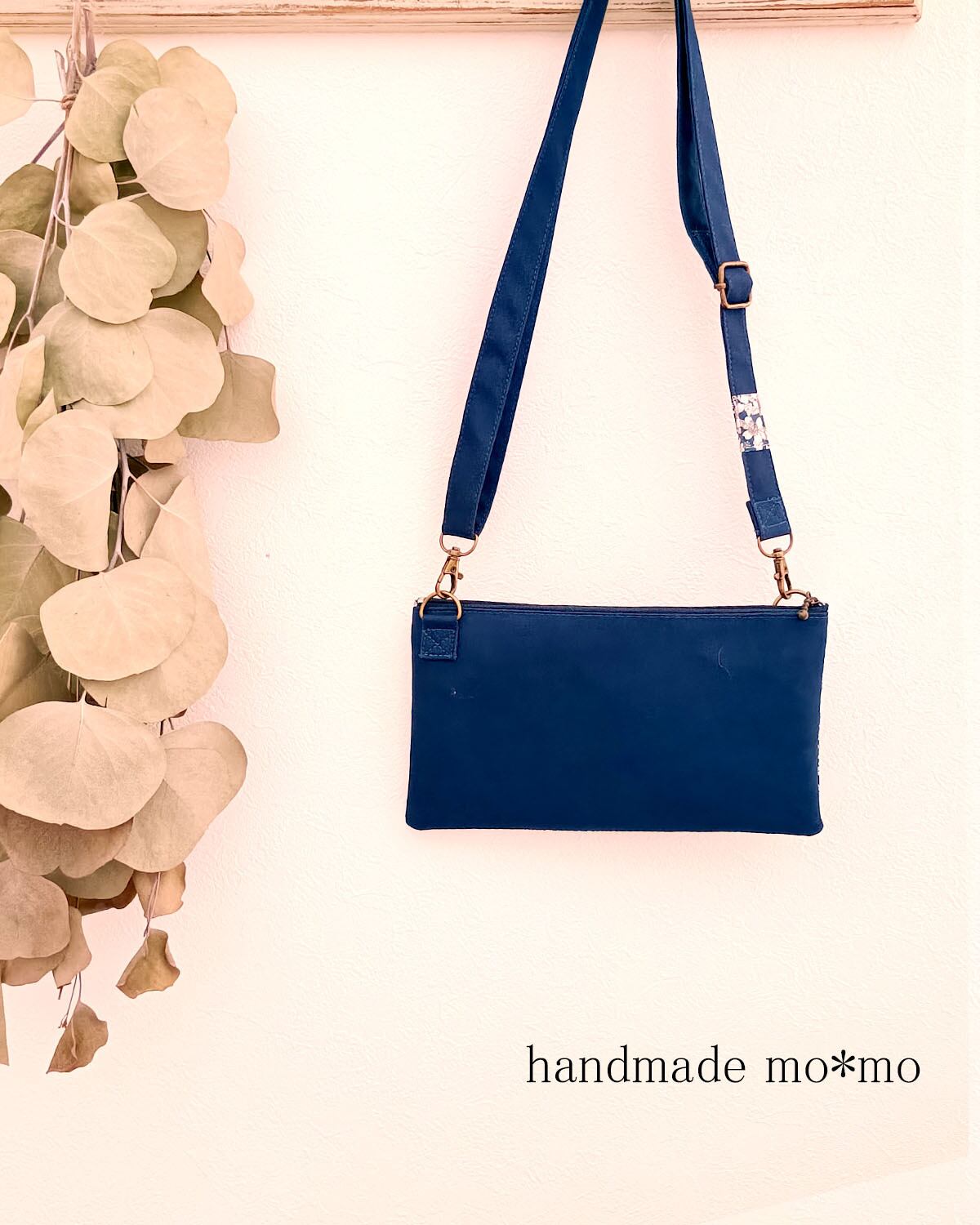 ショルダー紐は、本体と同じ無地の生地で仕立て、