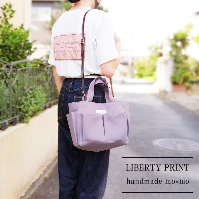 美しいリバティプリント・タナローン生地の繊細さや、柄がひきたつバッグです。