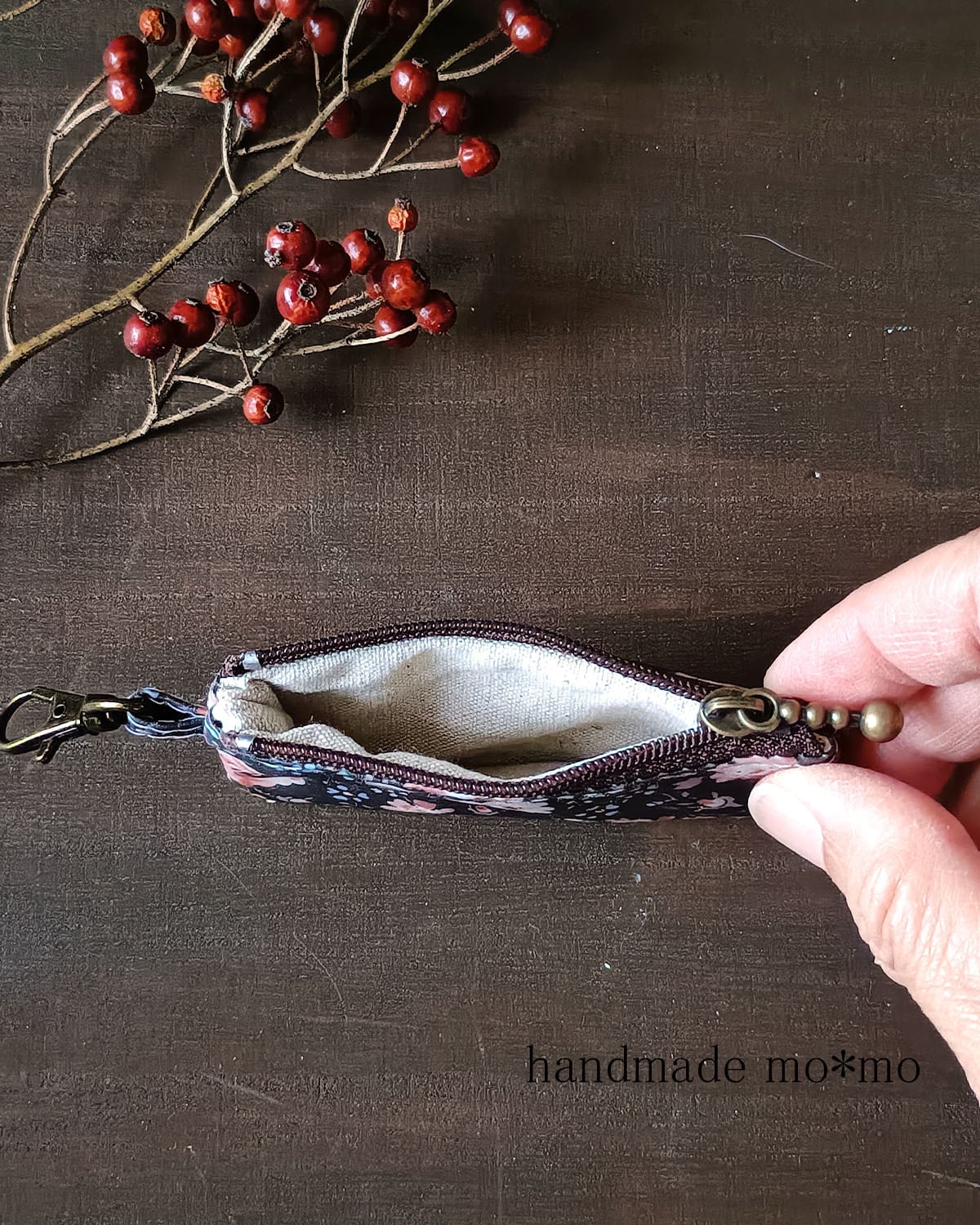 ラミネートのリバティプリントに、内布付きで丁寧に仕立てました。