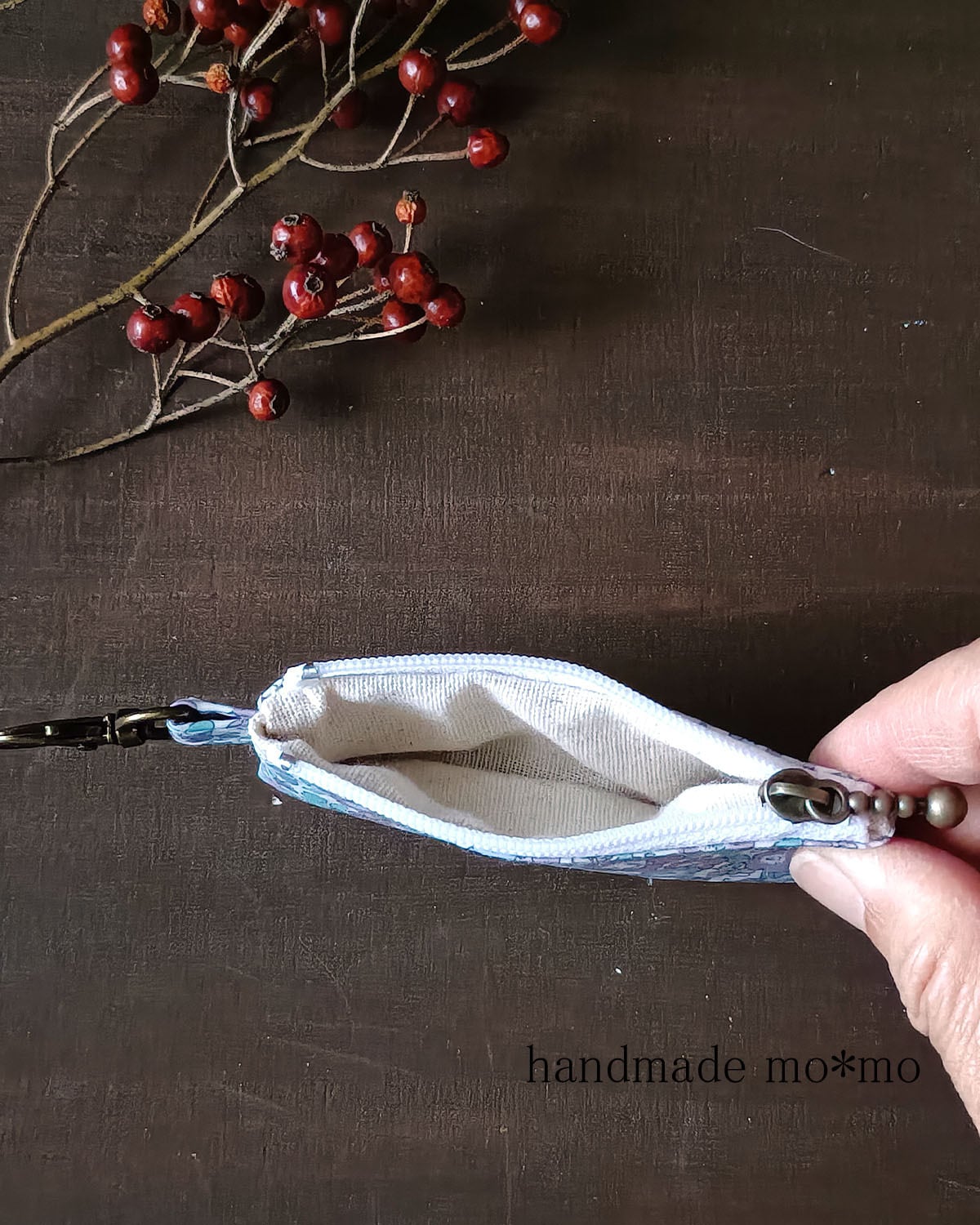 ラミネートのリバティプリントに、内布付きで丁寧に仕立てました。