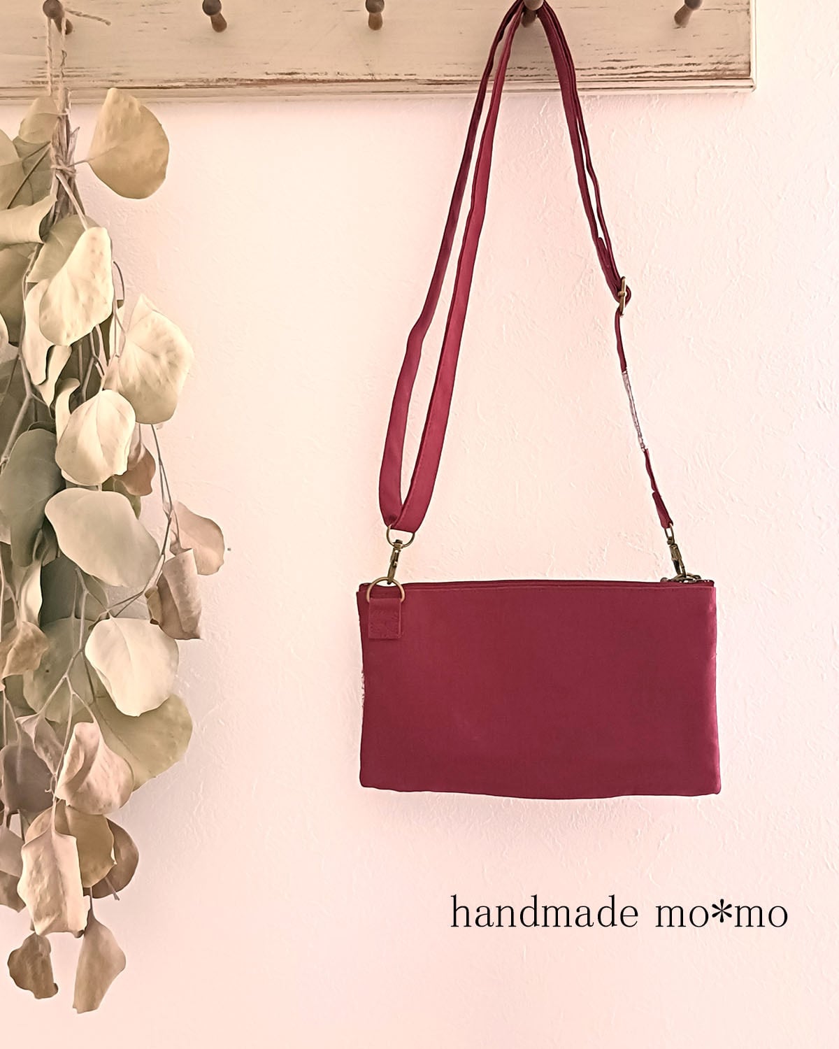 本体・ショルダー紐(無地): 綿麻キャンバス(ワインレッド)
