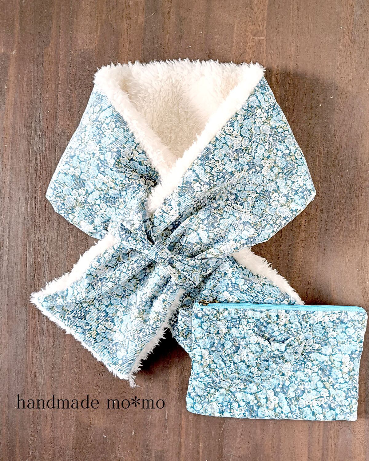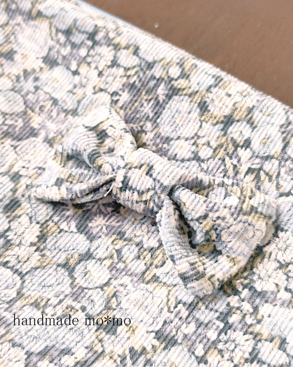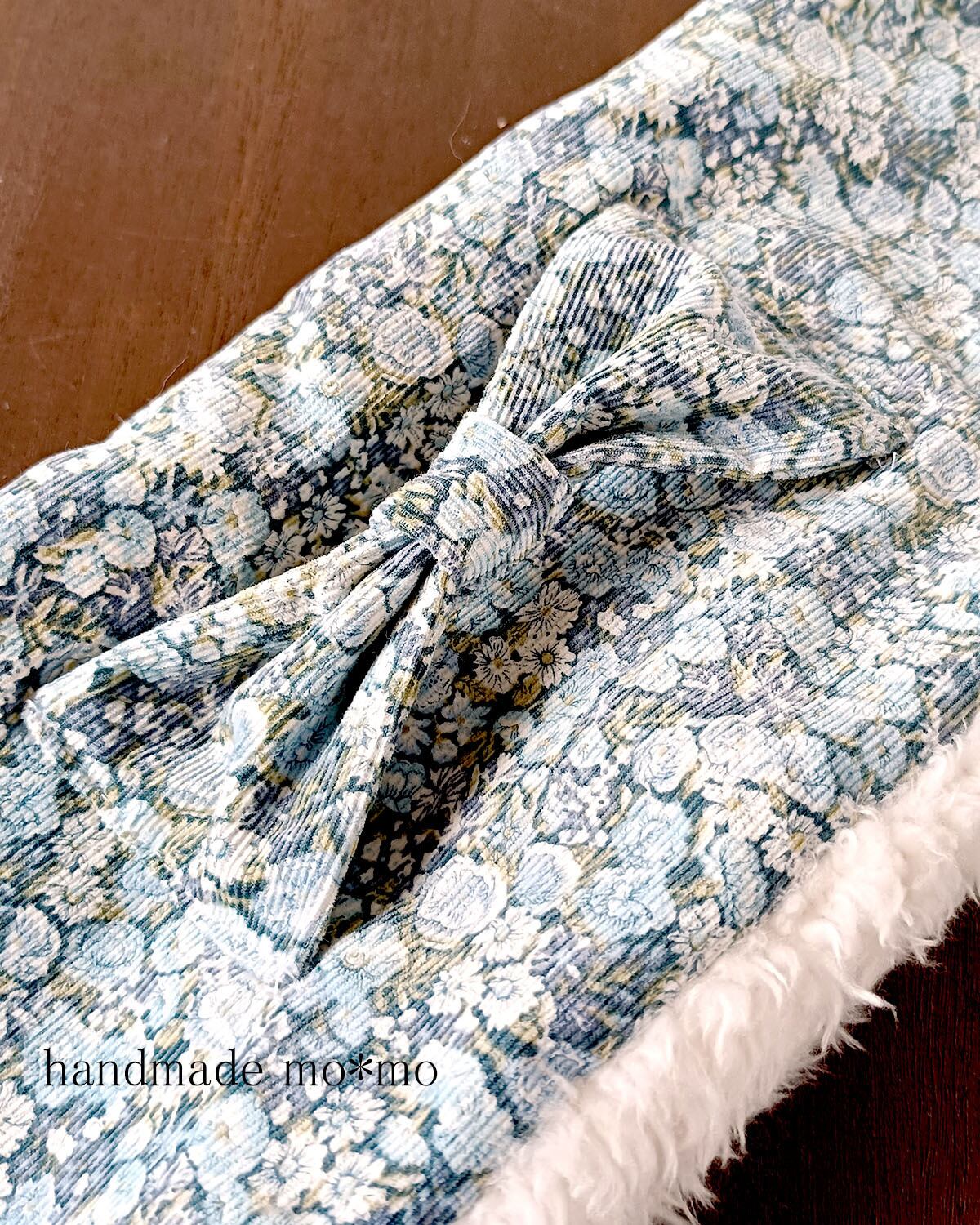 リバティプリントのコーデュロイの生地を使ったセットです