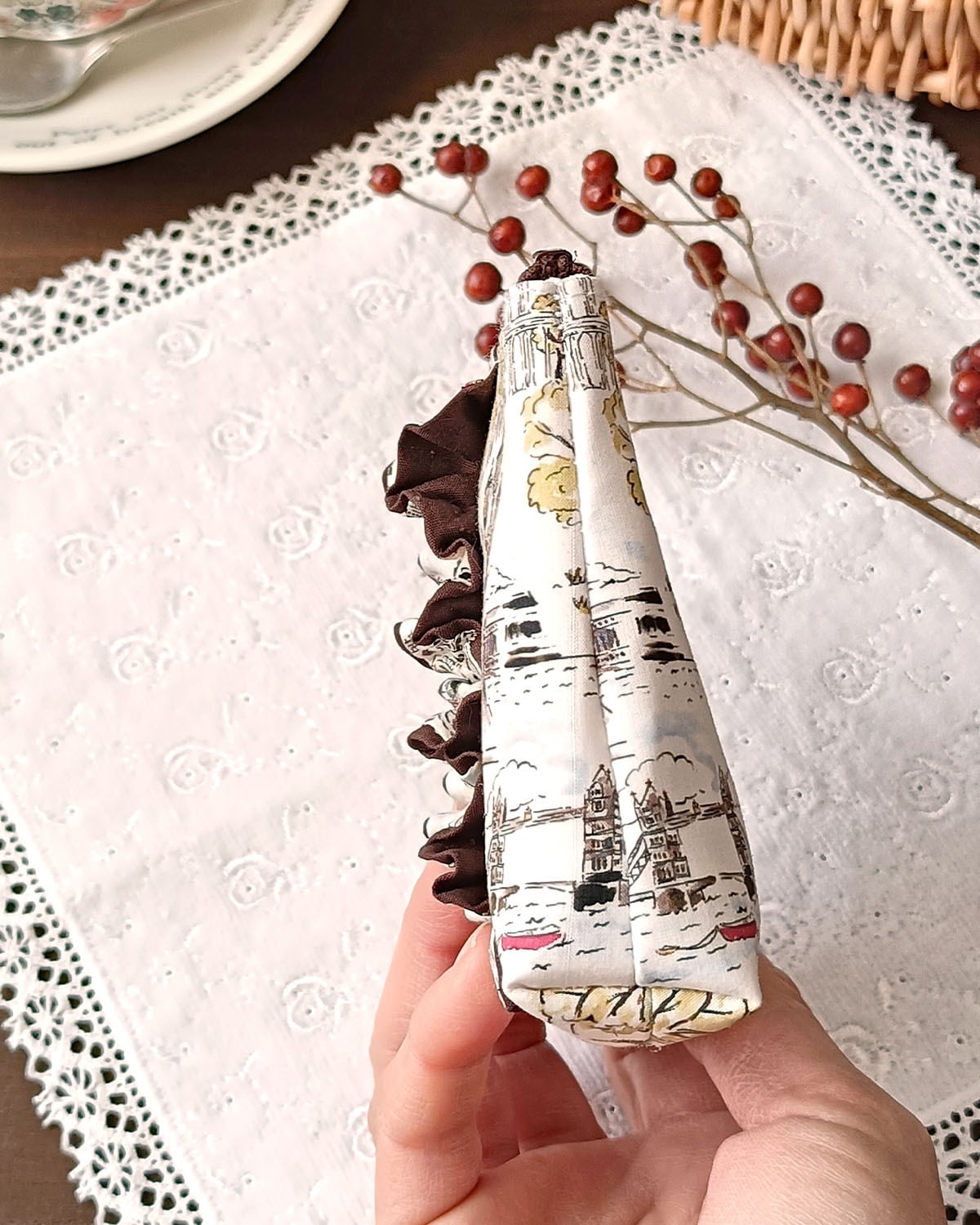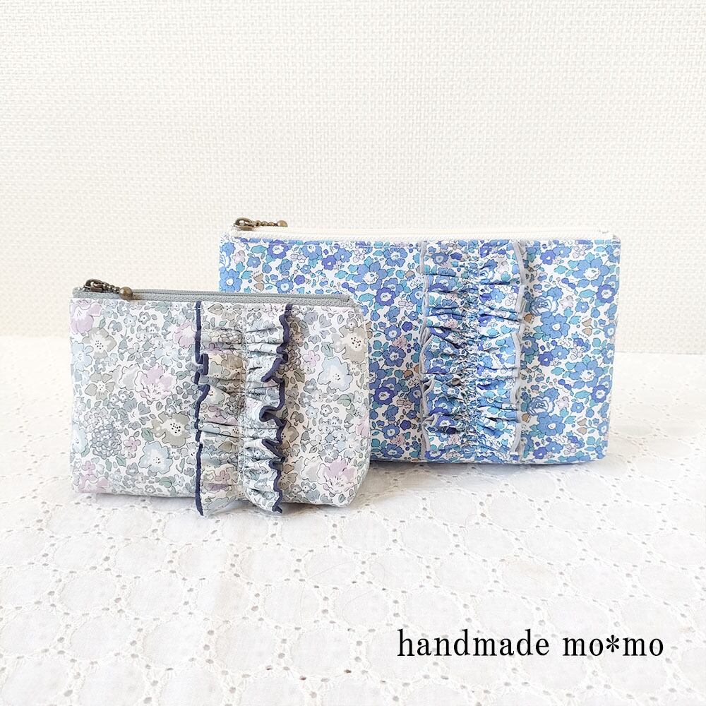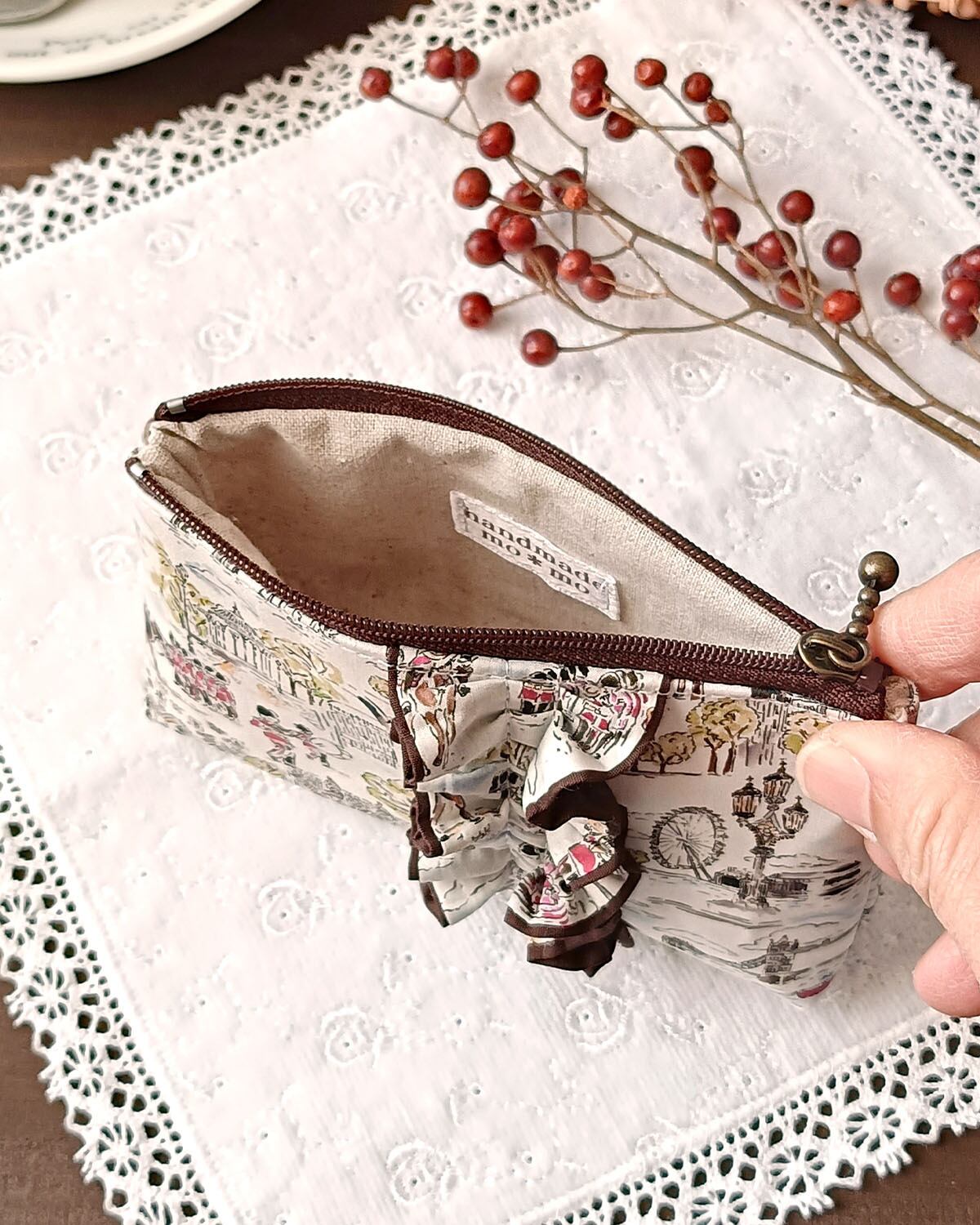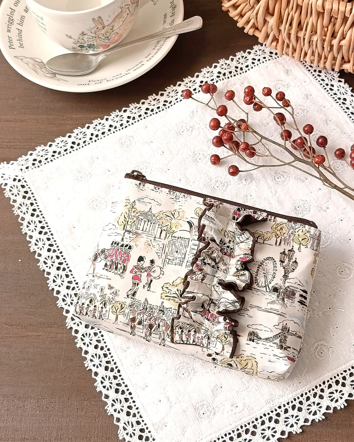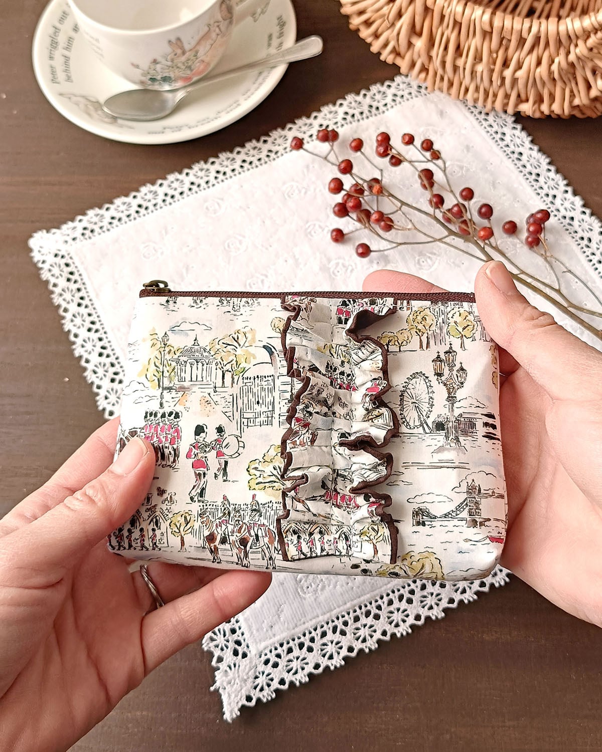 縦フリルファスナーポーチ12 <イギリス現地購入生地使用>リバティ マーブズマーチ 4774