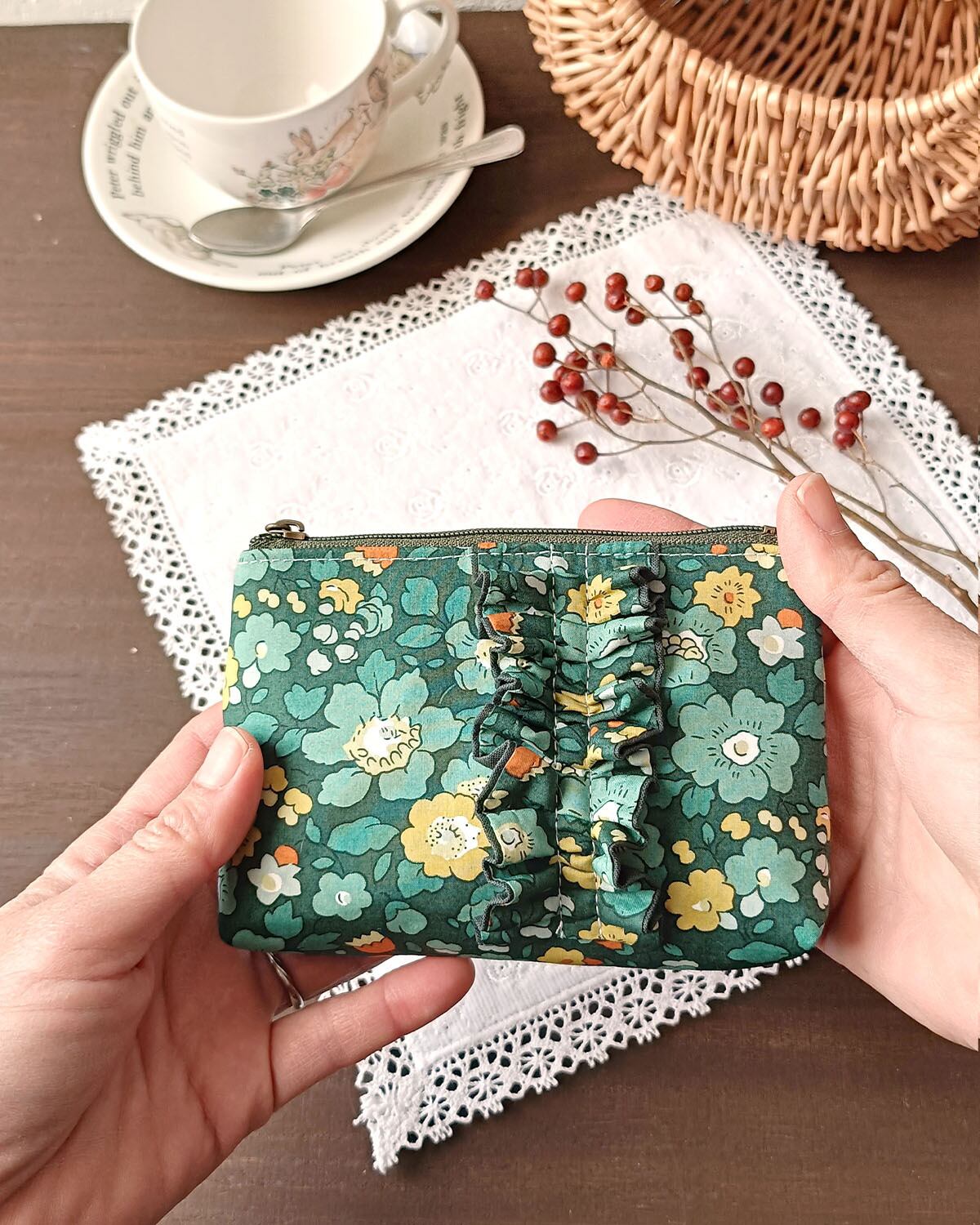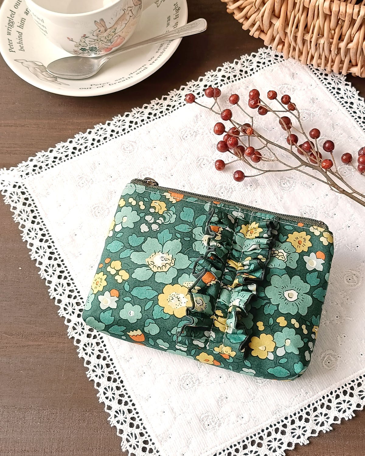 縦フリルファスナーポーチ12 <リバティロンドン取り寄せ生地使用>リバティ ベッツィメドウ 4776