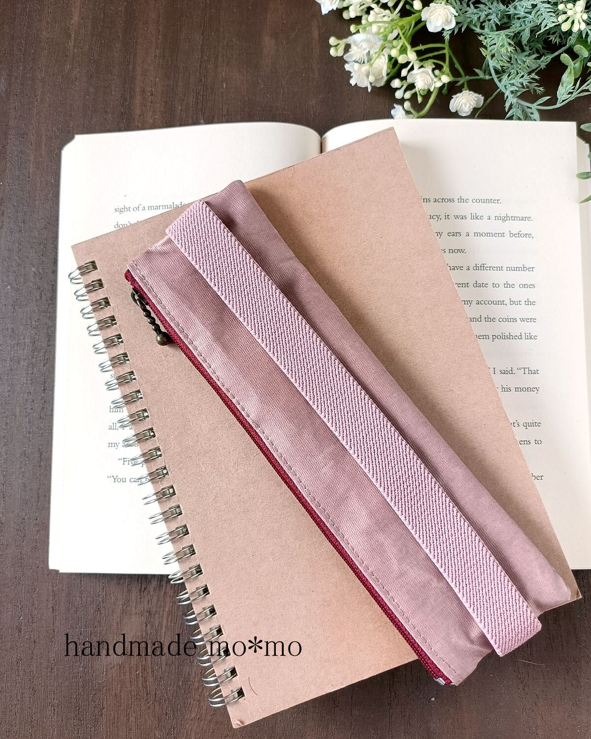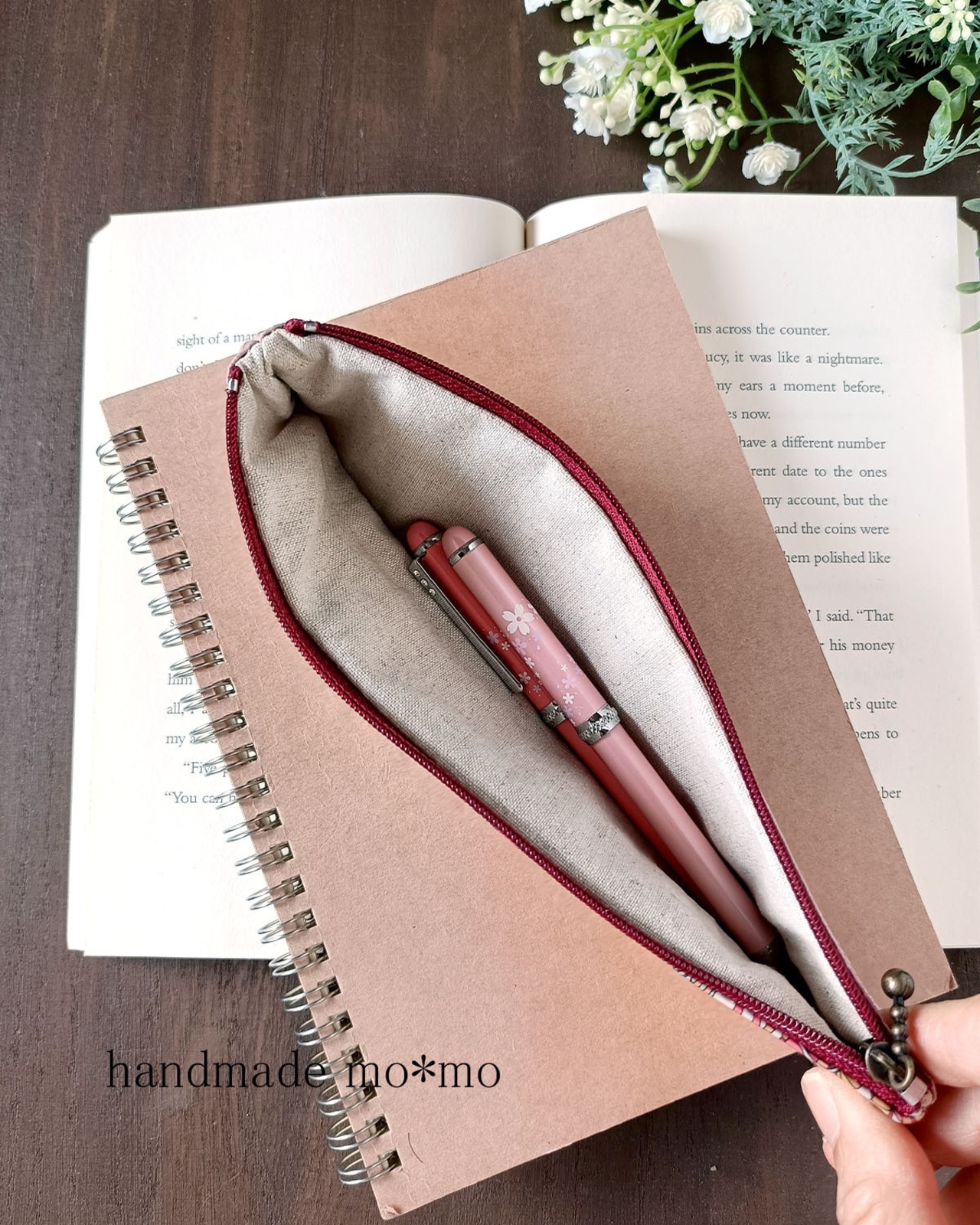 無地部分は有輪商店のオックス生地をつや消しラミネート加工した生地です。