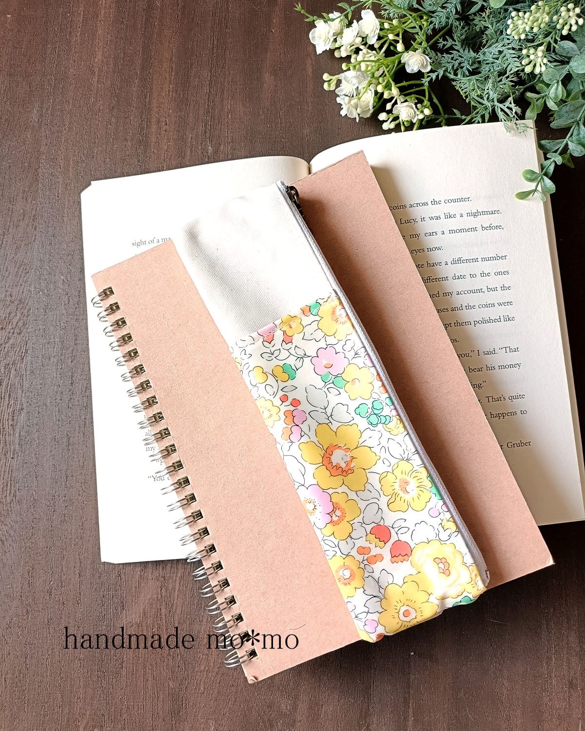 無地部分は有輪商店のオックス生地をつや消しラミネート加工した生地です。