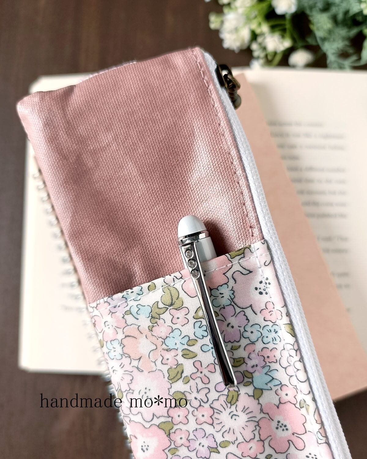 表ポケットはリバティプリントのラミネート生地を使用しています。
