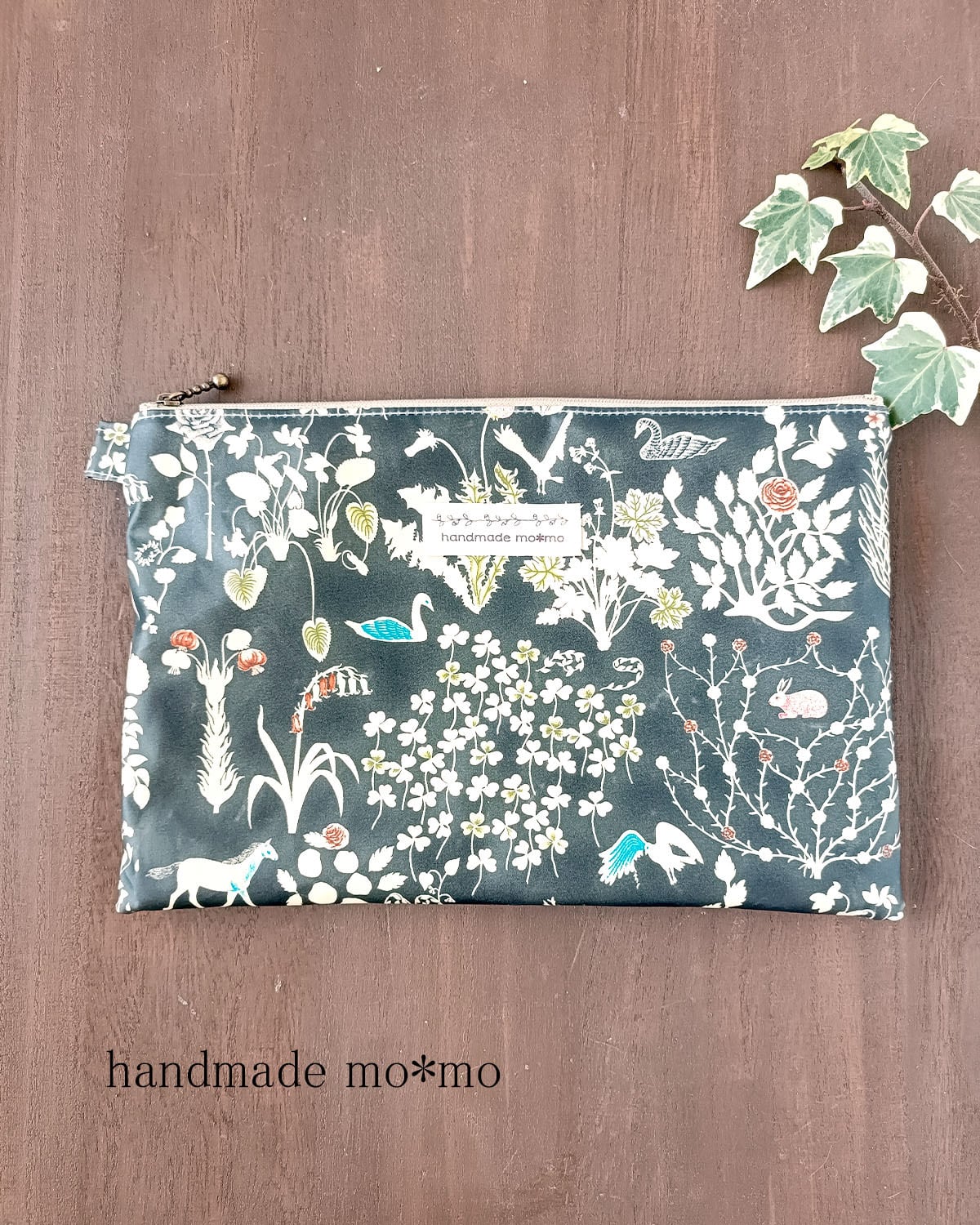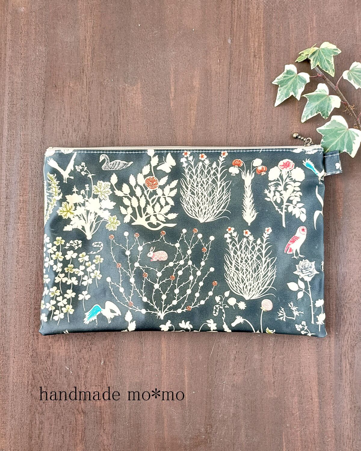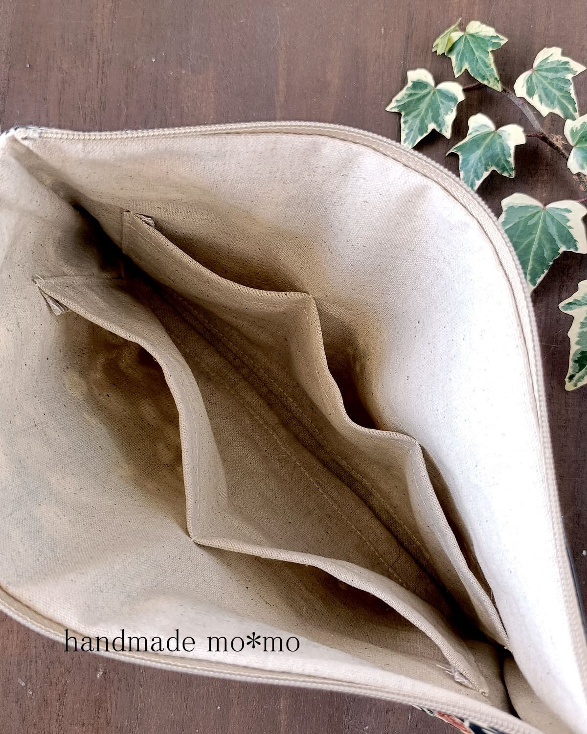 6枚目の画像:3種類のサイズのぺたんこポーチを作りました。こちらの作品は一番大きなサイズです。