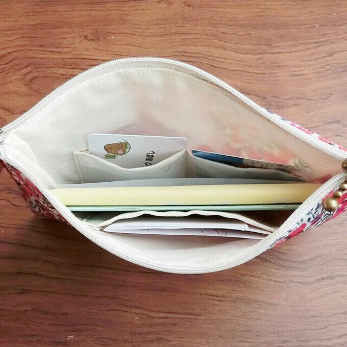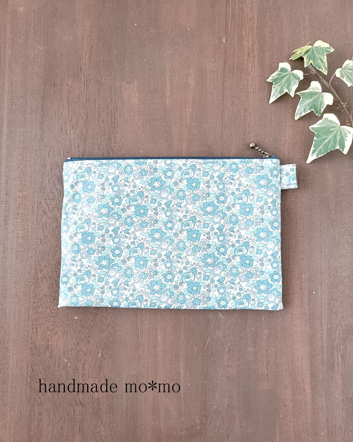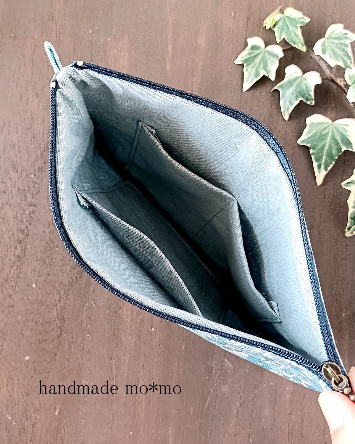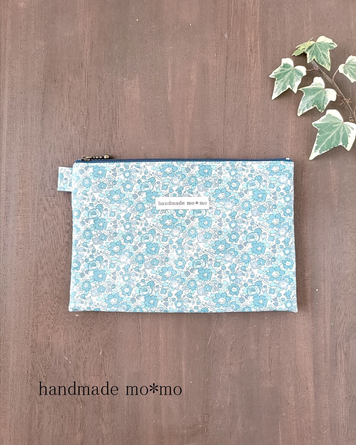 7枚目:3つのサイズのぺたんこポーチを作っています。こちらの作品は真ん中のサイズです。