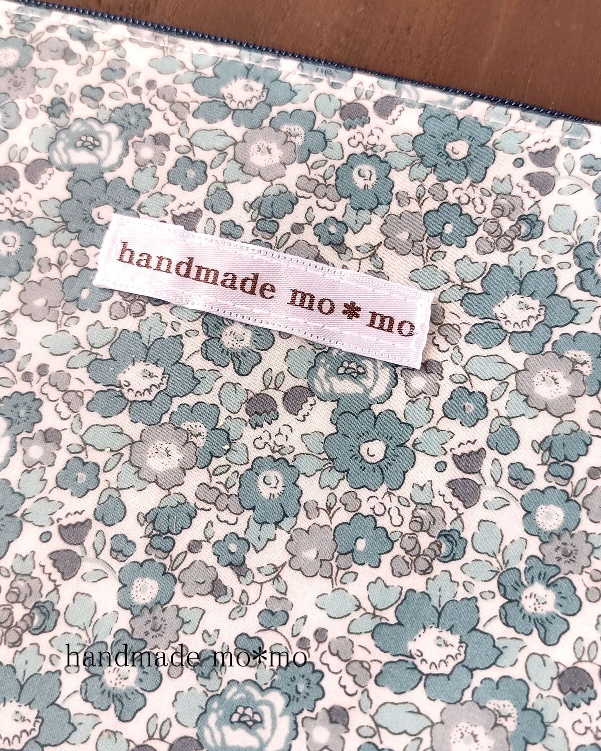 ラミネートのリバティ生地を使用。リバティプリント定番の高級素材タナローンに、つや消しでマットなフィルムを貼り付けた、ラミネート生地使用。