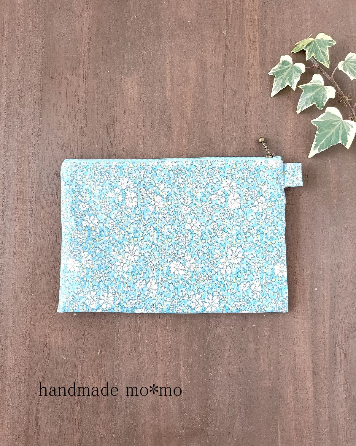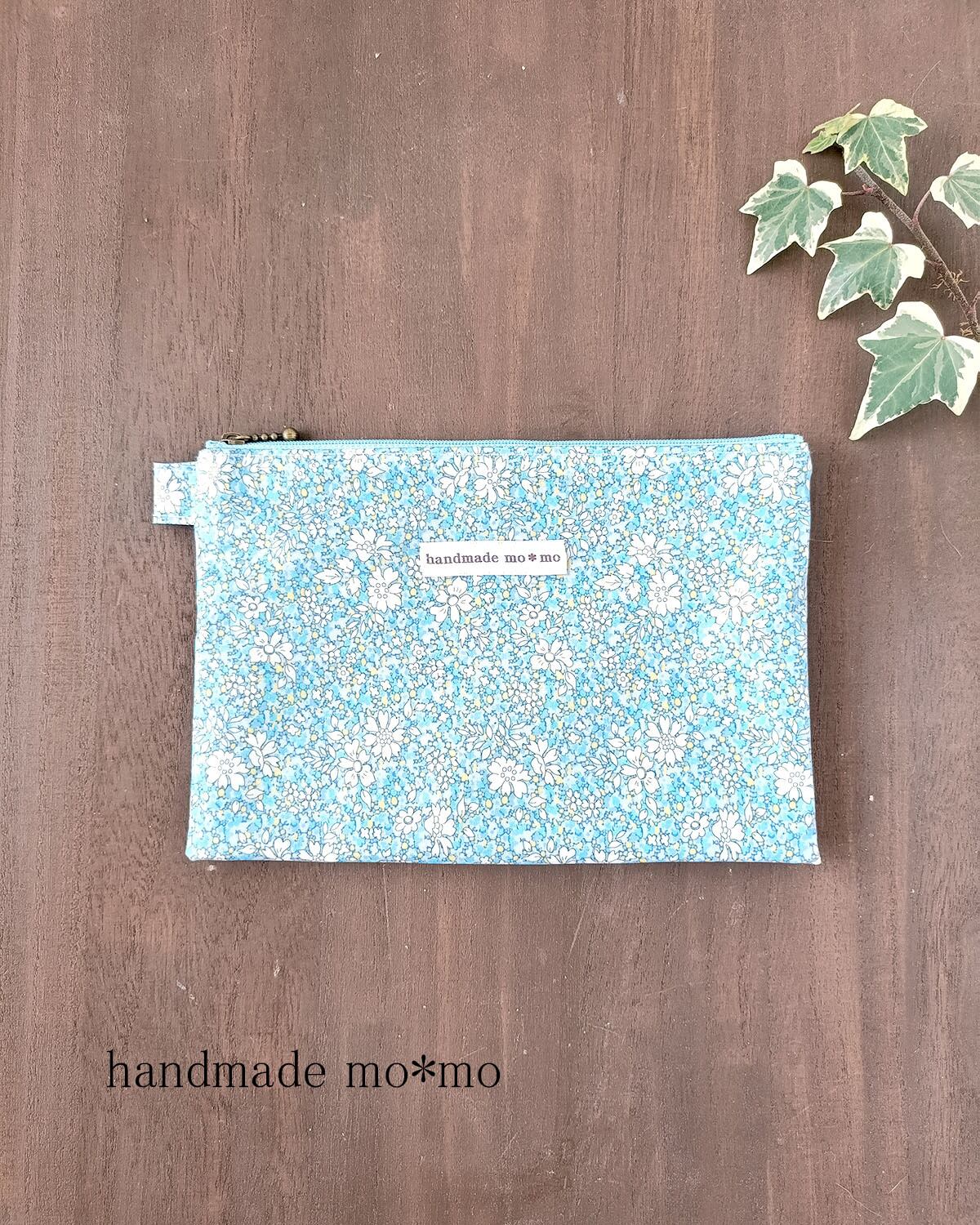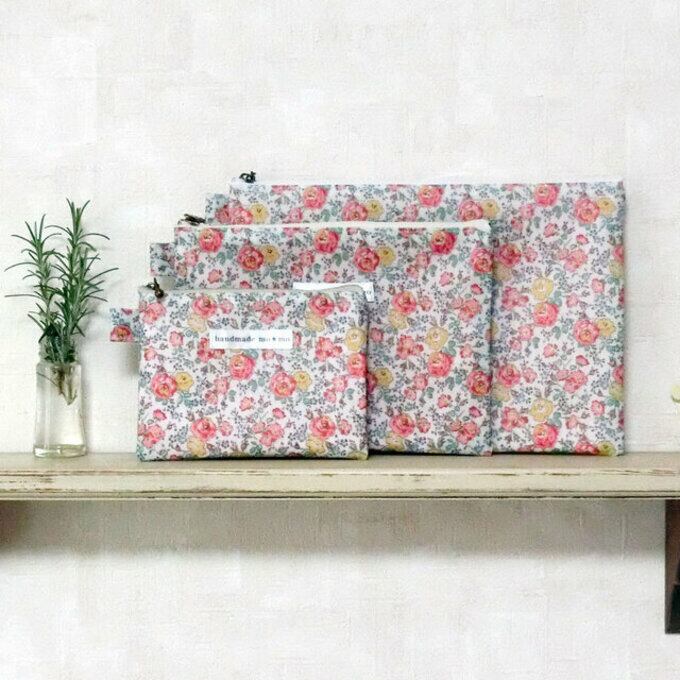 ラミネートのリバティ生地を使用。リバティプリント定番の高級素材タナローンに、つや消しでマットなフィルムを貼り付けた、ラミネート生地使用。