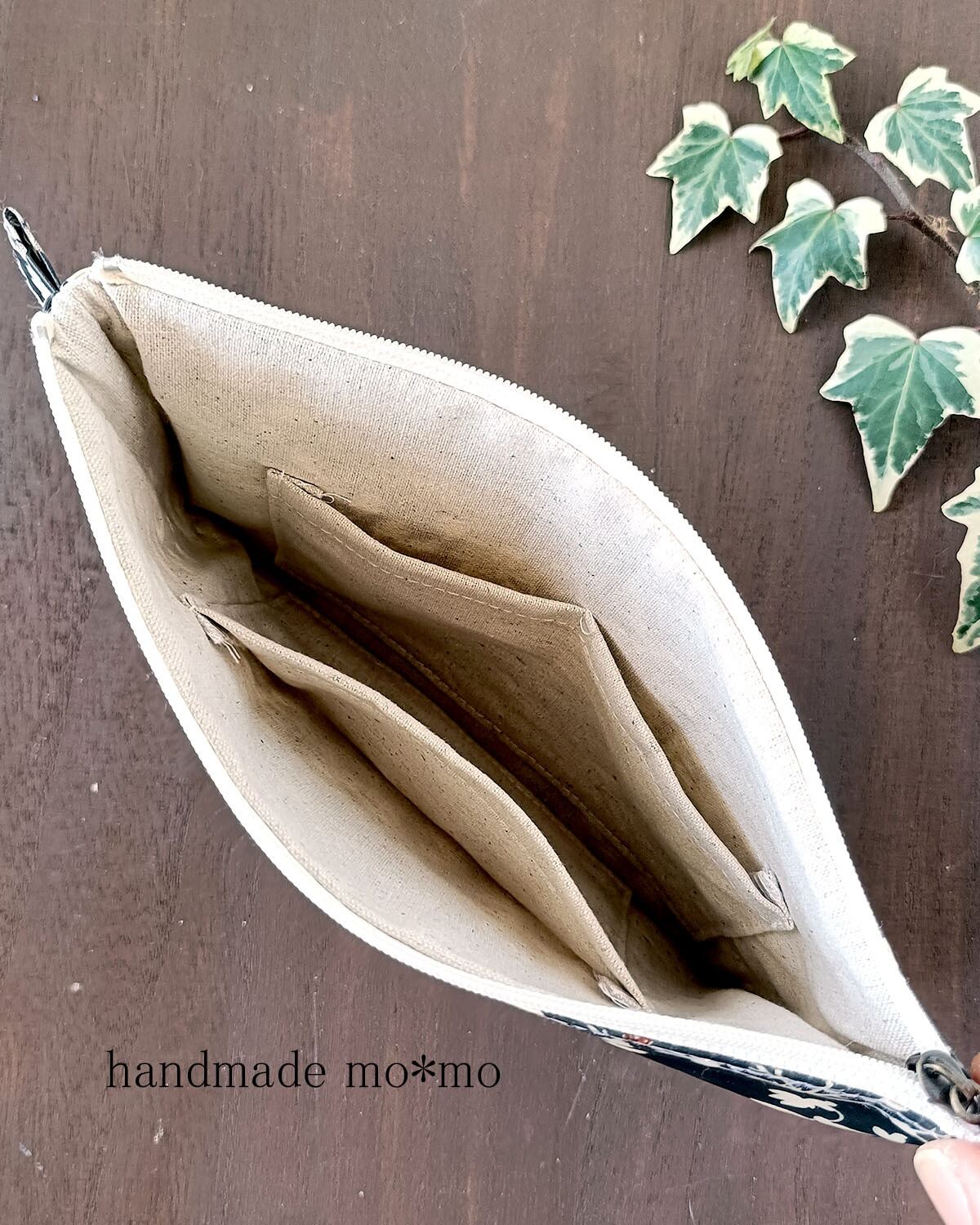 ラミネート生地のポーチは、ほつれない分、内布がついていないものが多いです。