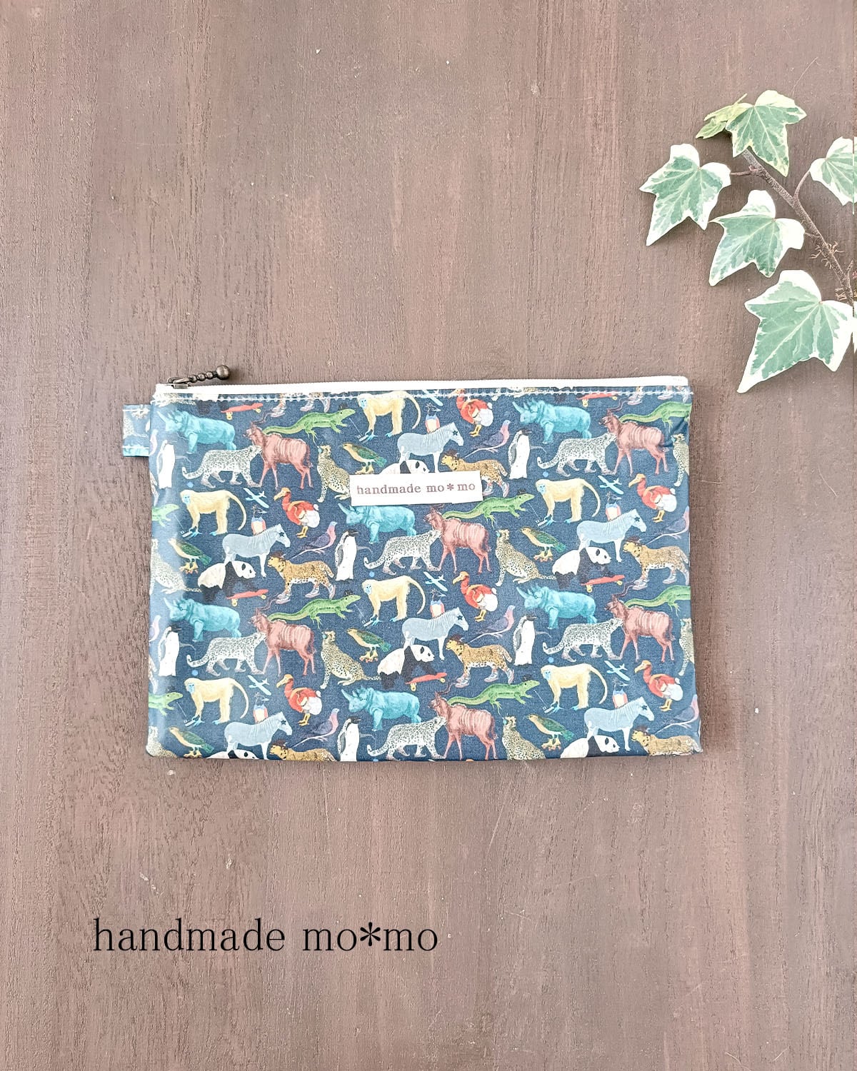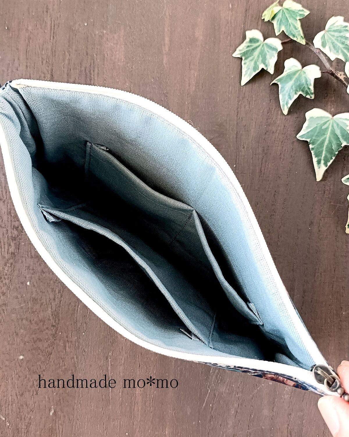 7枚目:3つのサイズのぺたんこポーチを作っています。こちらの作品は真ん中のサイズです。
