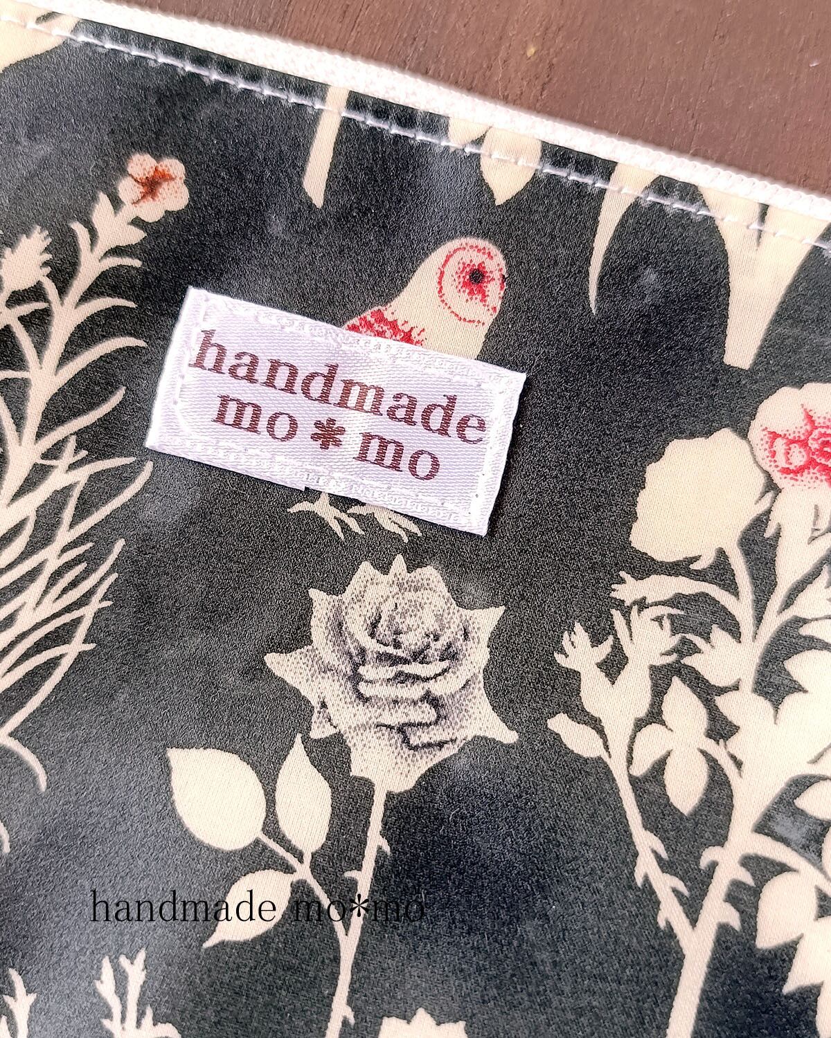 ラミネートのリバティ生地を使用。リバティプリント定番の高級素材タナローンに、つや消しでマットなフィルムを貼り付けた、ラミネート生地使用。