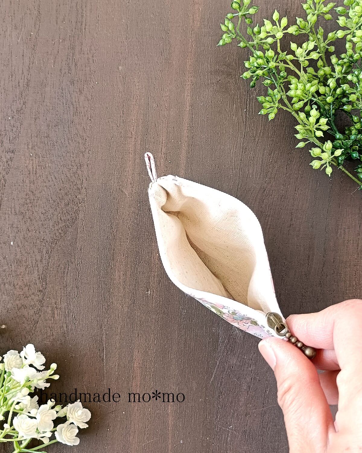 6枚目:ミニポーチシリーズとして、ファスナー12cm、10cm、8cmの3サイズを出品しています。