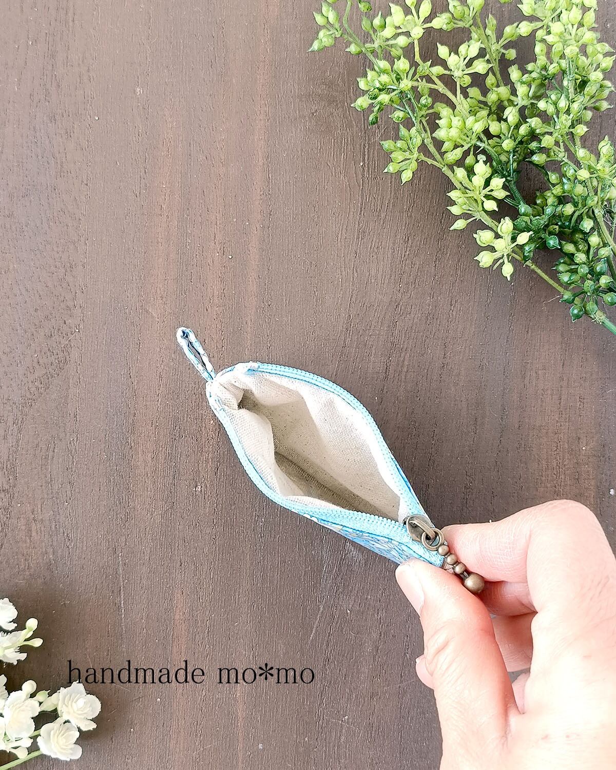8cmファスナーの手のひらにのるくらいの、小さなポーチです。