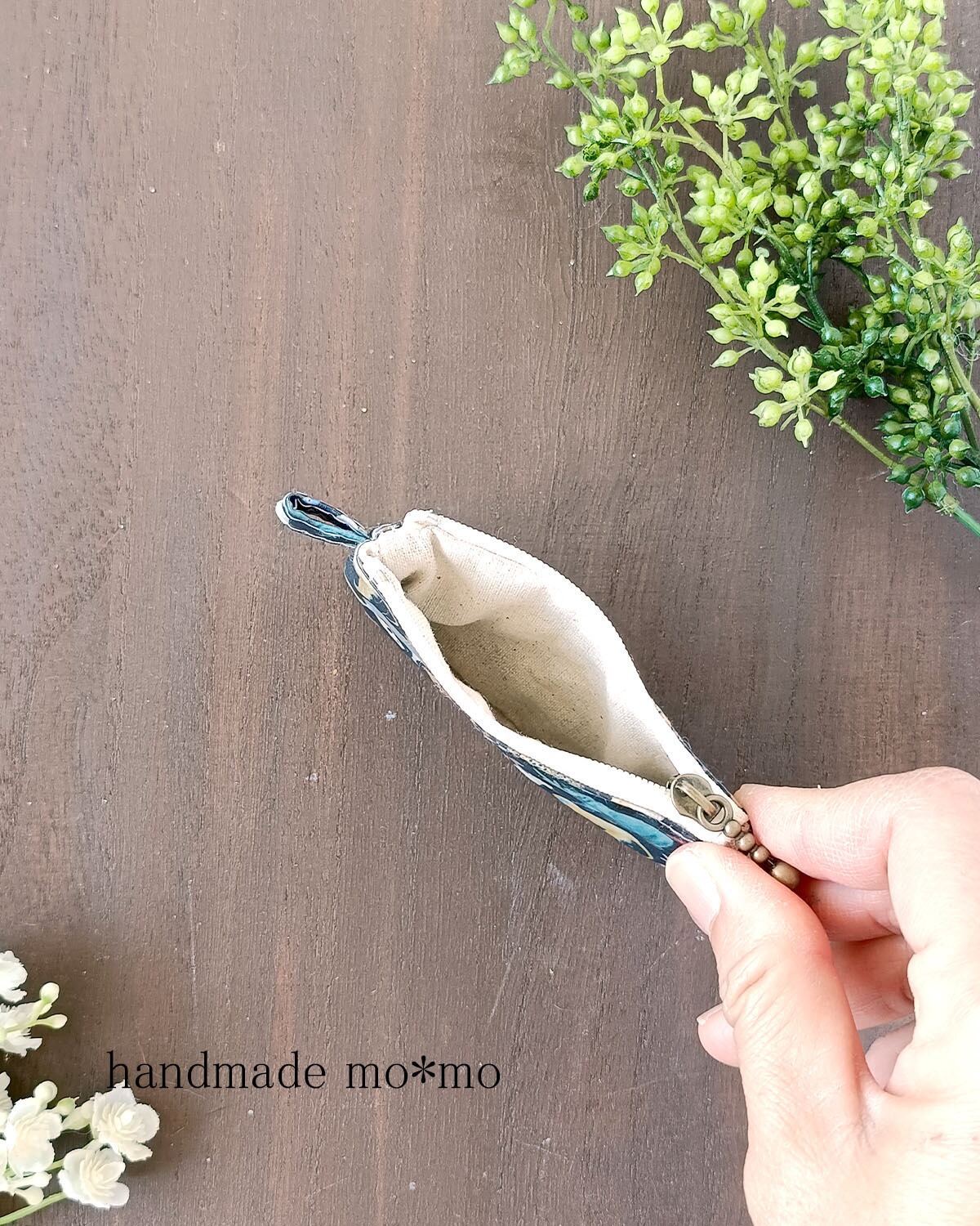8cmファスナーの手のひらにのるくらいの、小さなポーチです。
