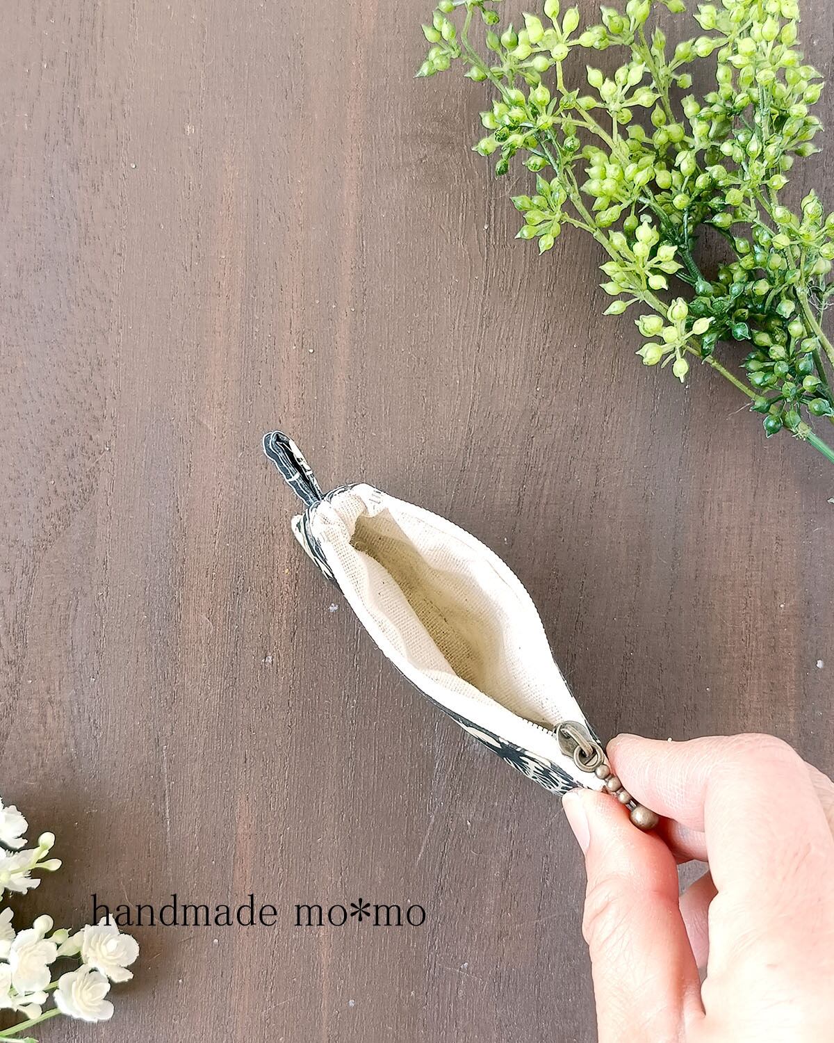 8cmファスナーの手のひらにのるくらいの、小さなポーチです。