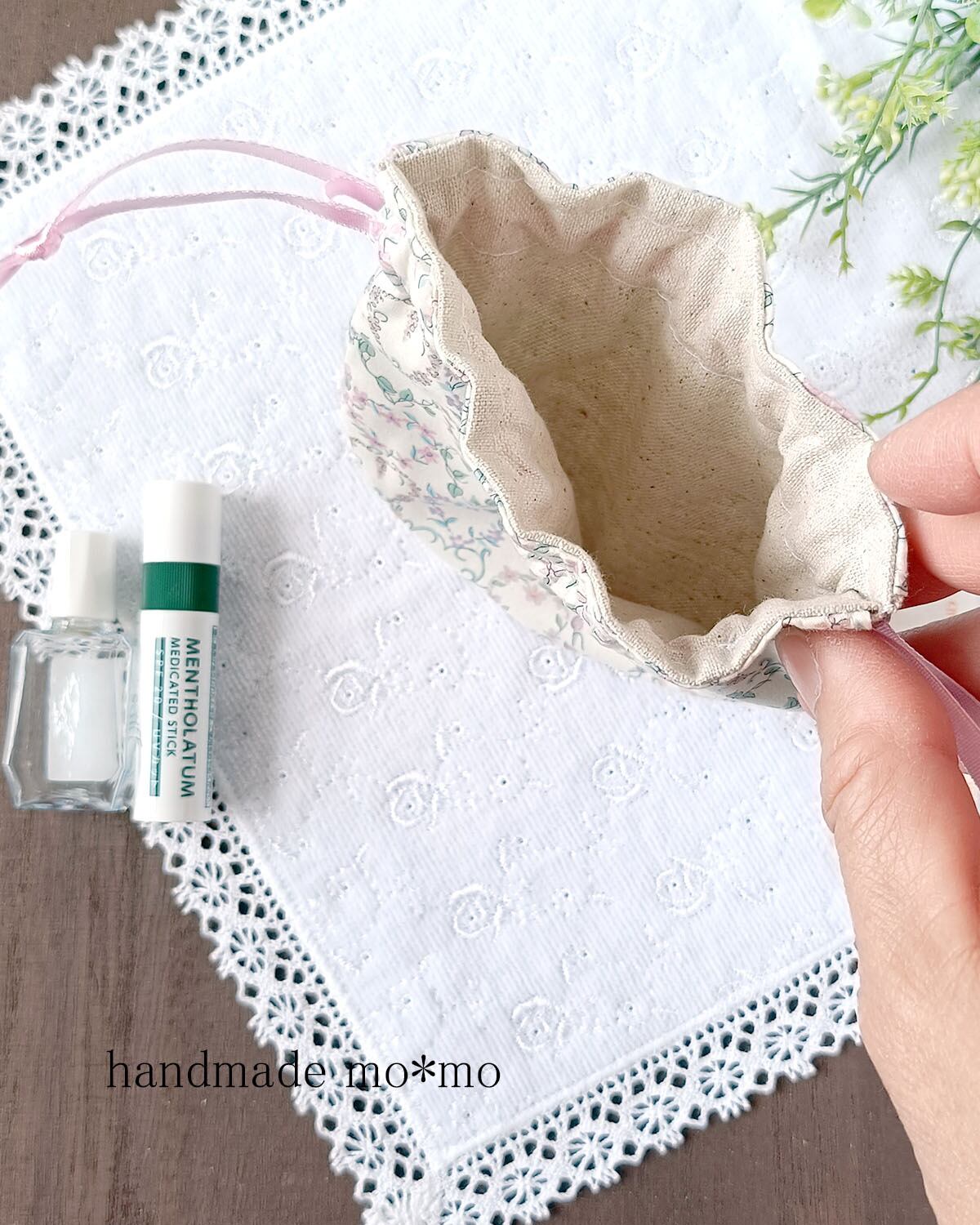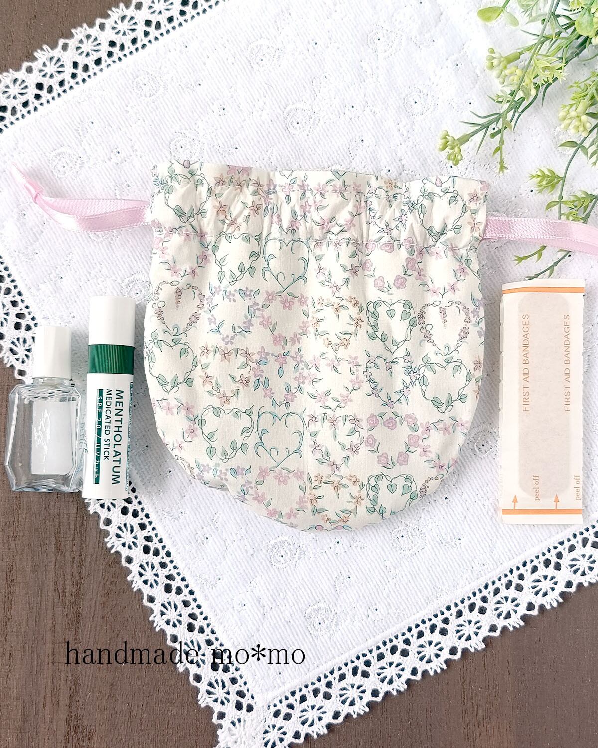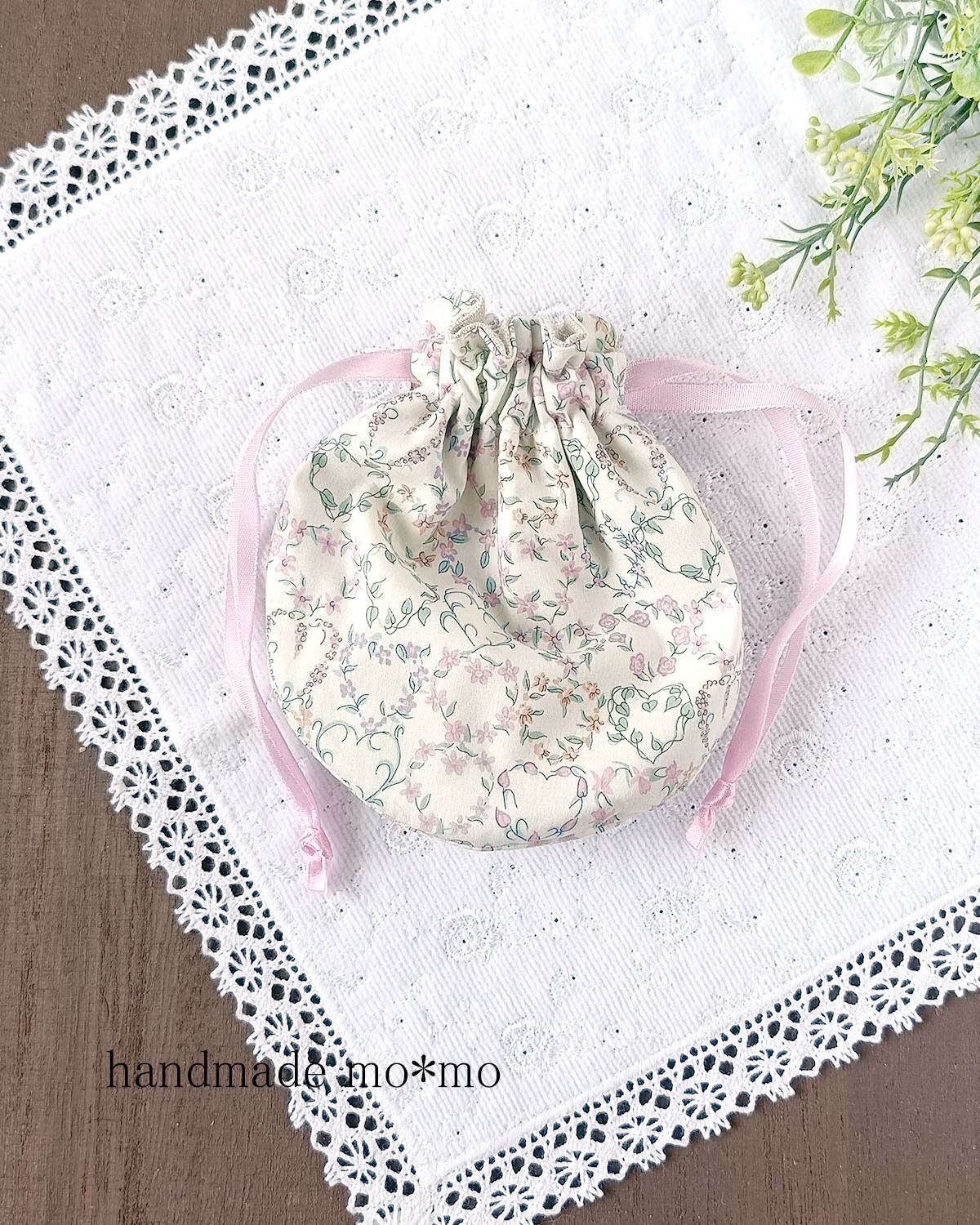 ころんとまんまるのかわいいフォルムの巾着です。