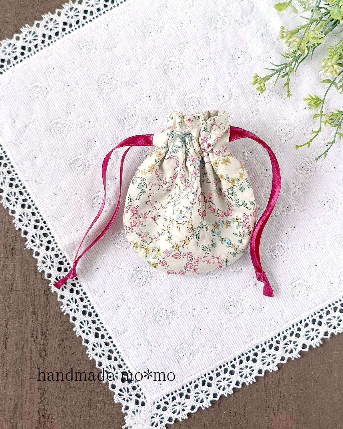サテンリボンでしぼると、エレガントな雰囲気に仕上がりました。