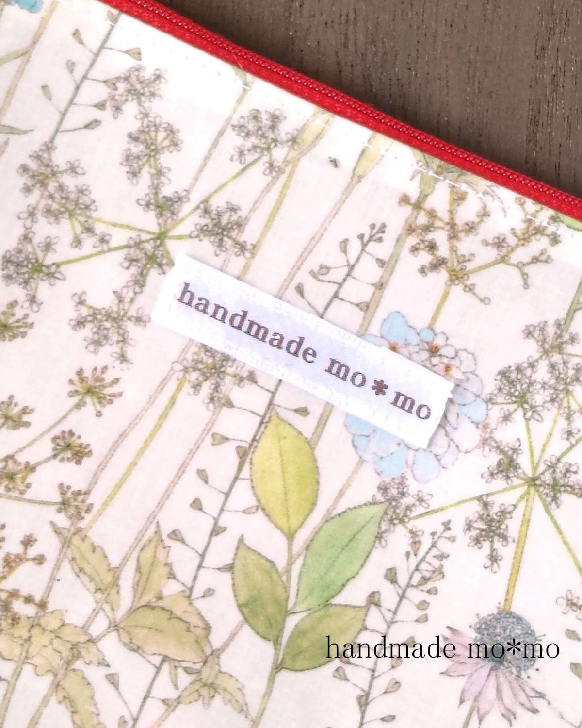ラミネートのリバティ生地を使用。リバティプリント定番の高級素材タナローンに、つや消しでマットなフィルムを貼り付けた、ラミネート生地使用。