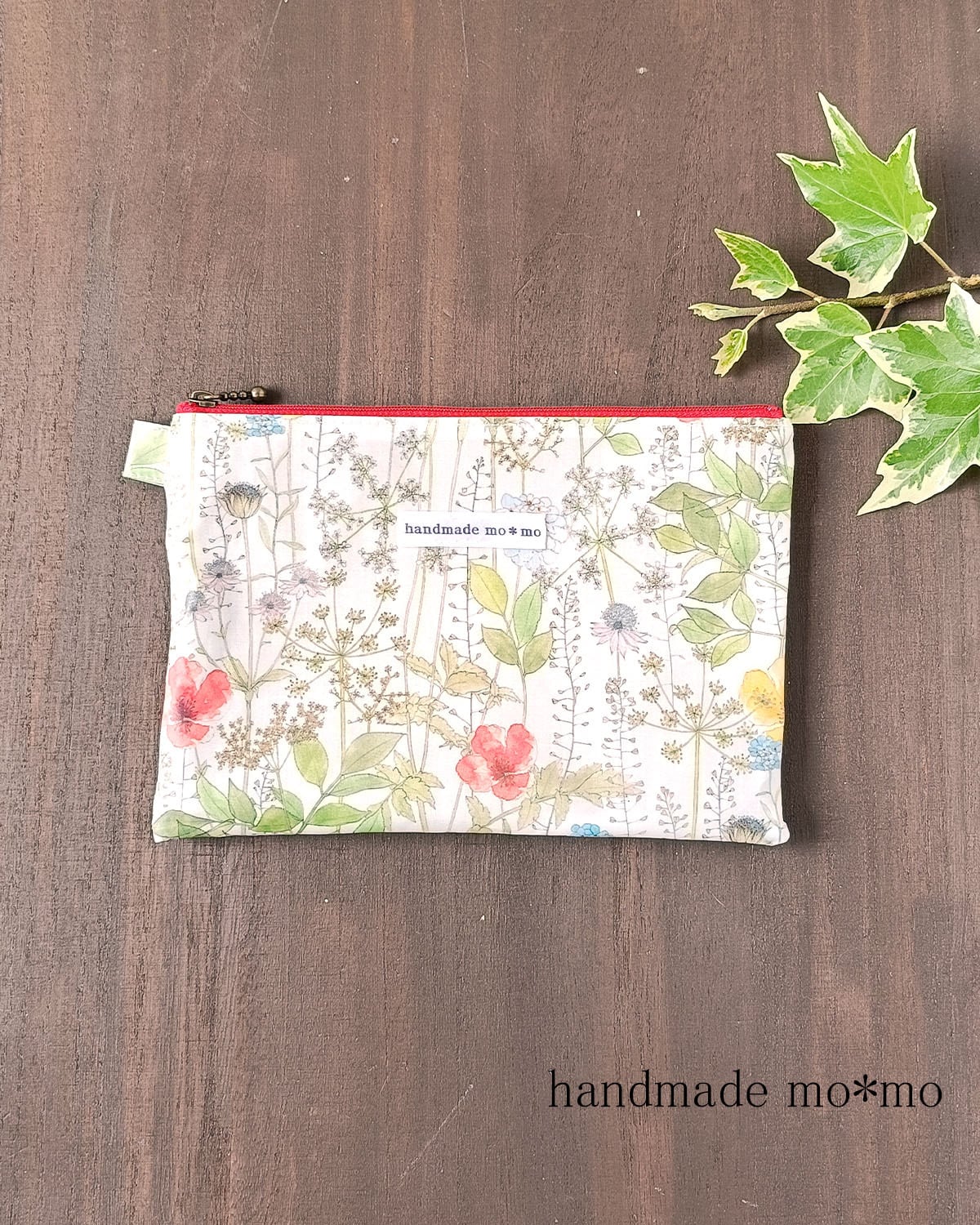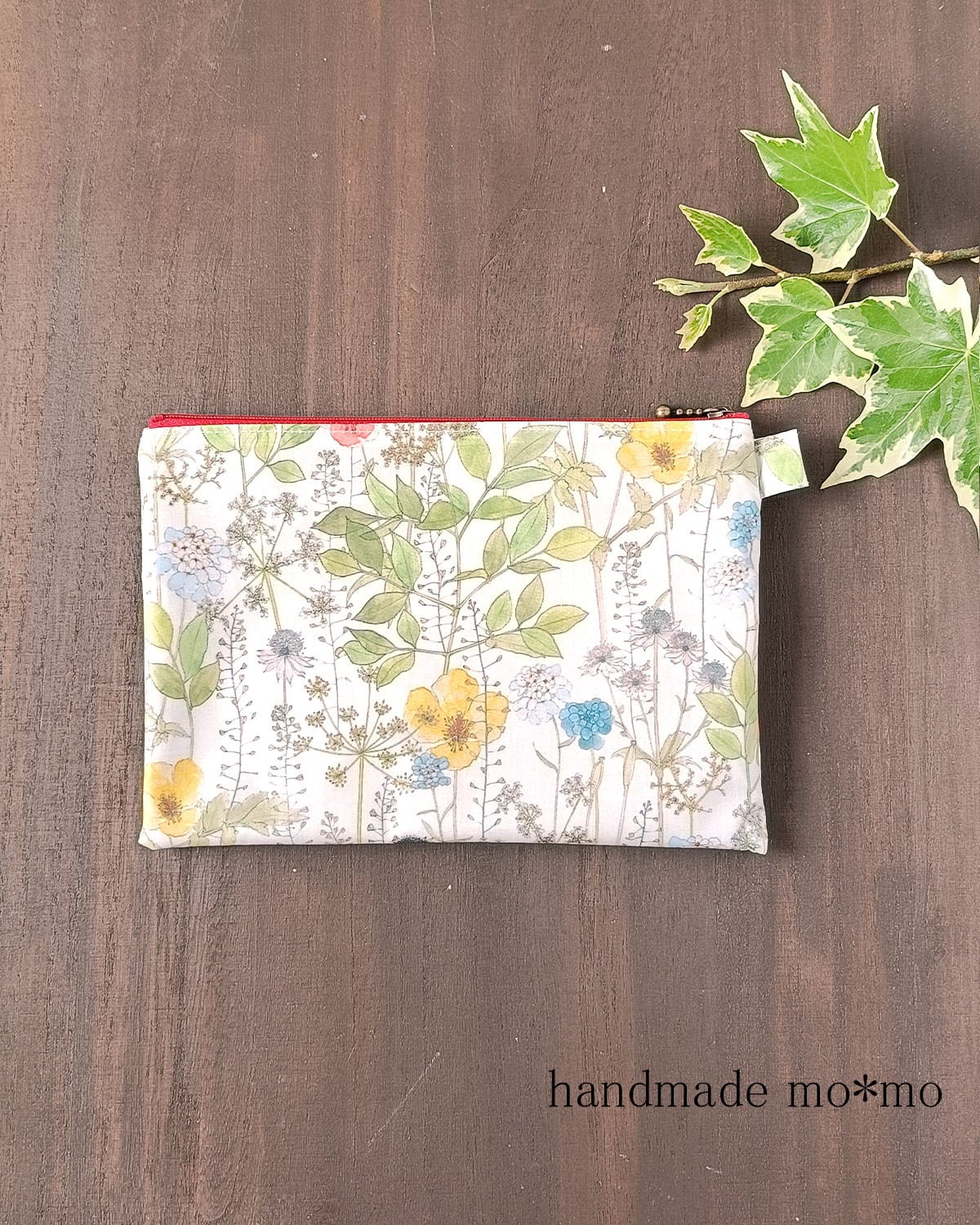 7枚目:3つのサイズのぺたんこポーチを作っています。こちらの作品は真ん中のサイズです。