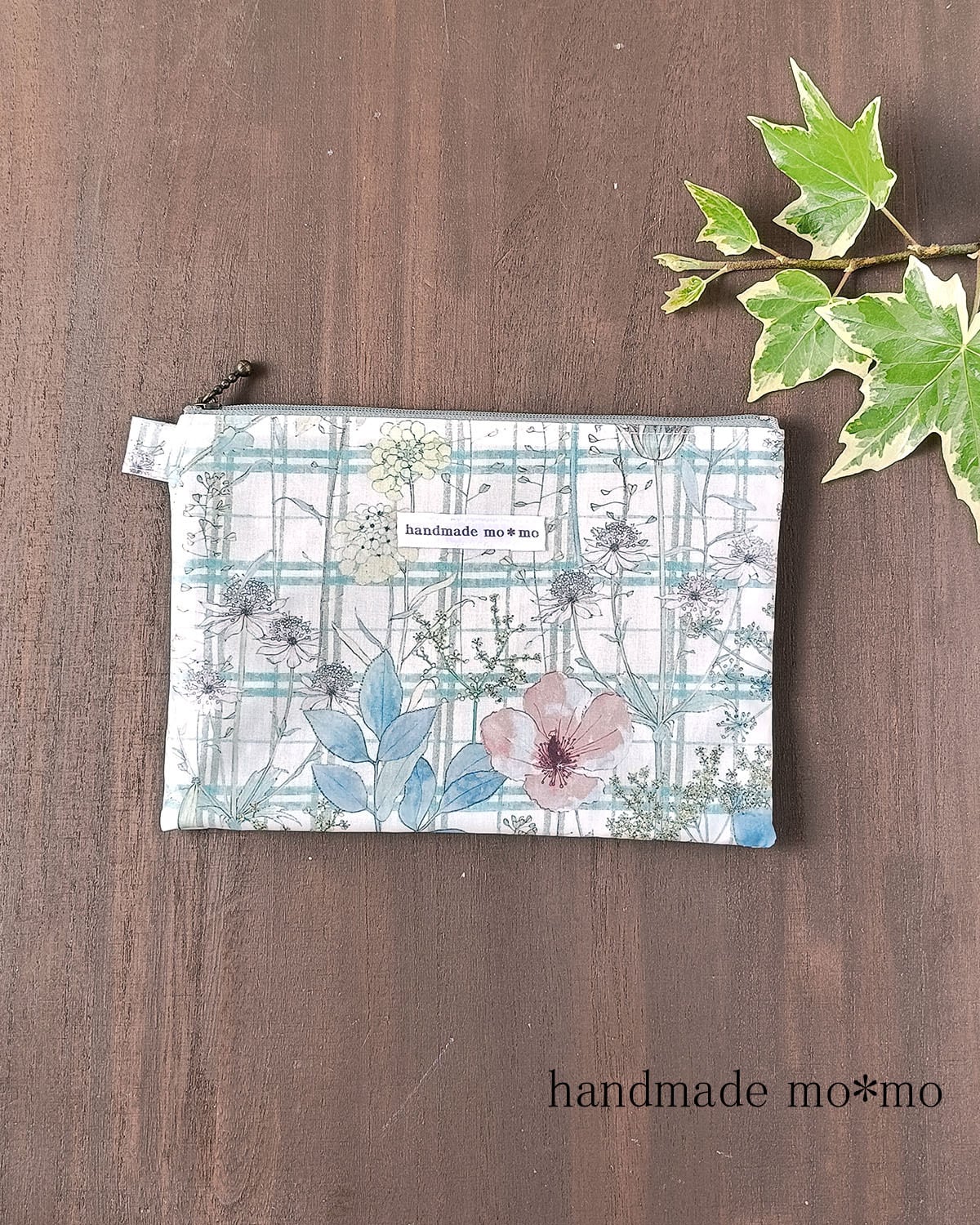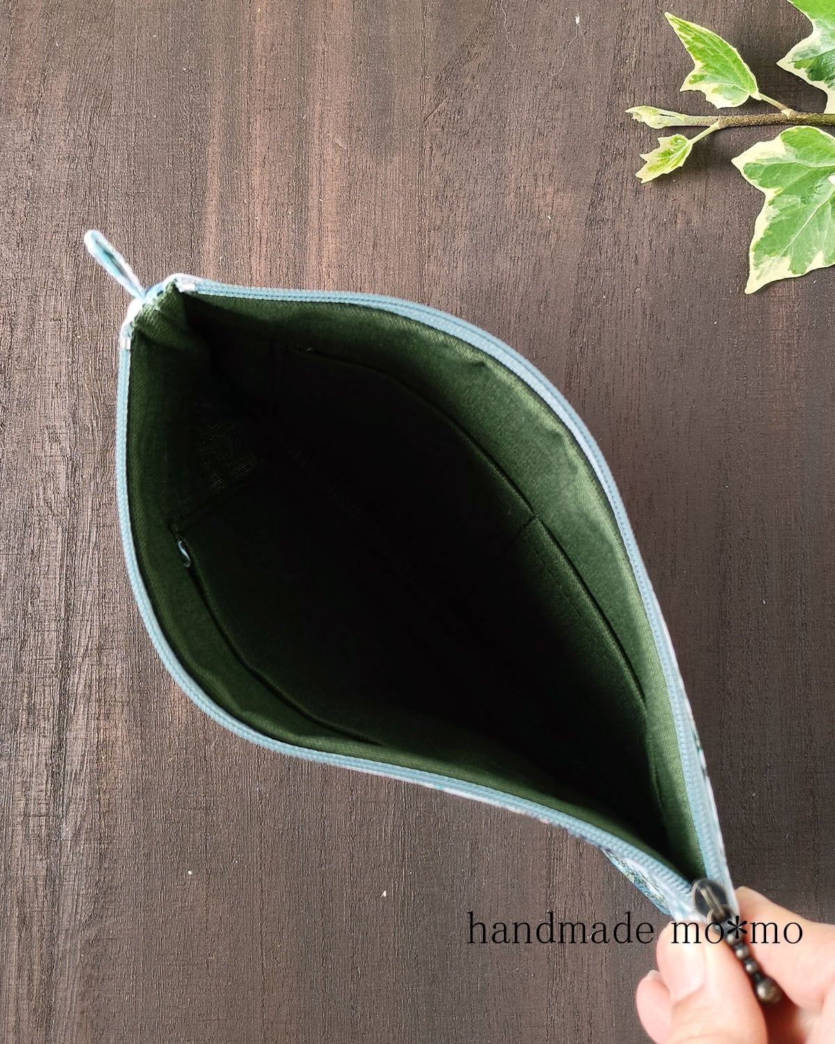 7枚目:3つのサイズのぺたんこポーチを作っています。こちらの作品は真ん中のサイズです。