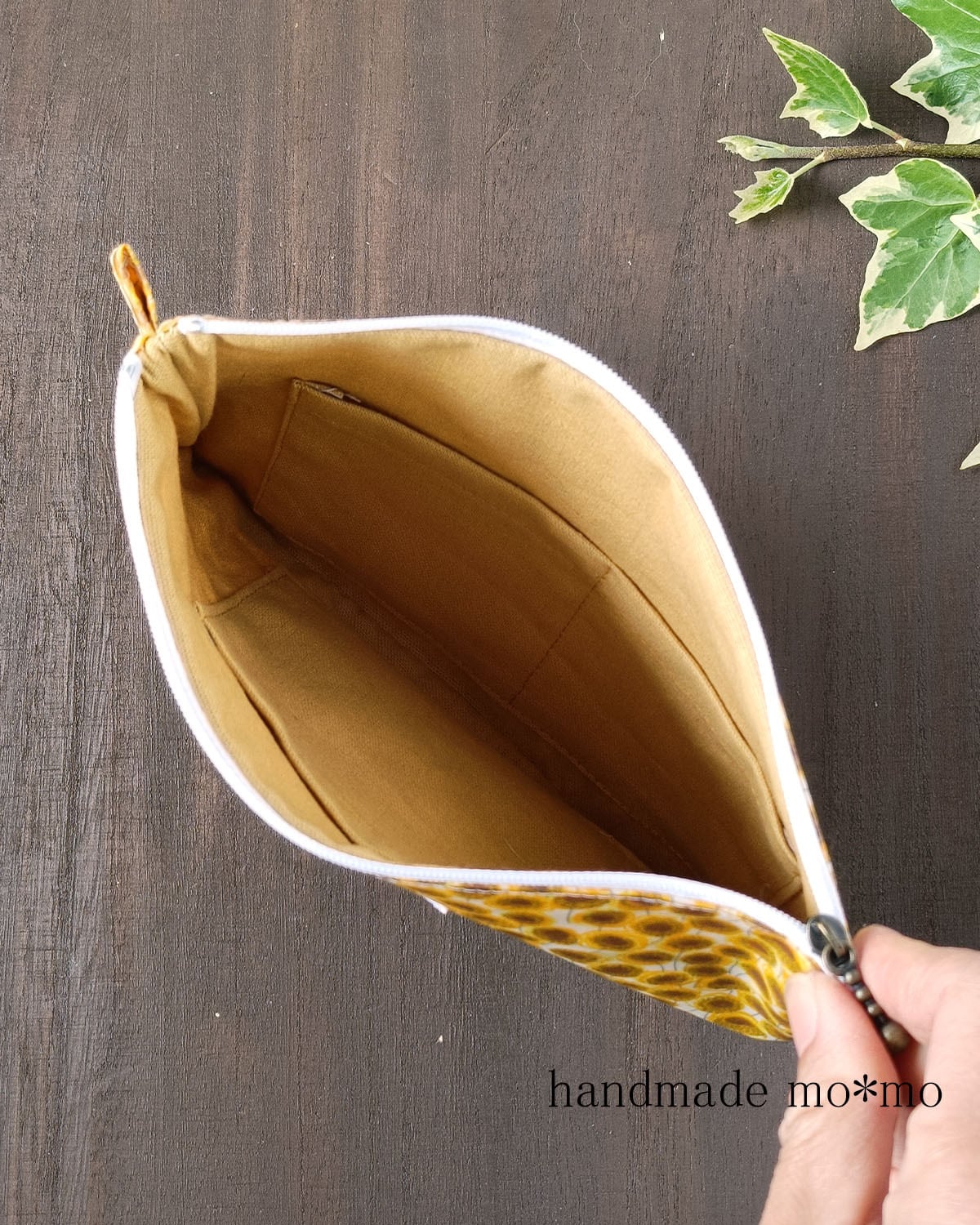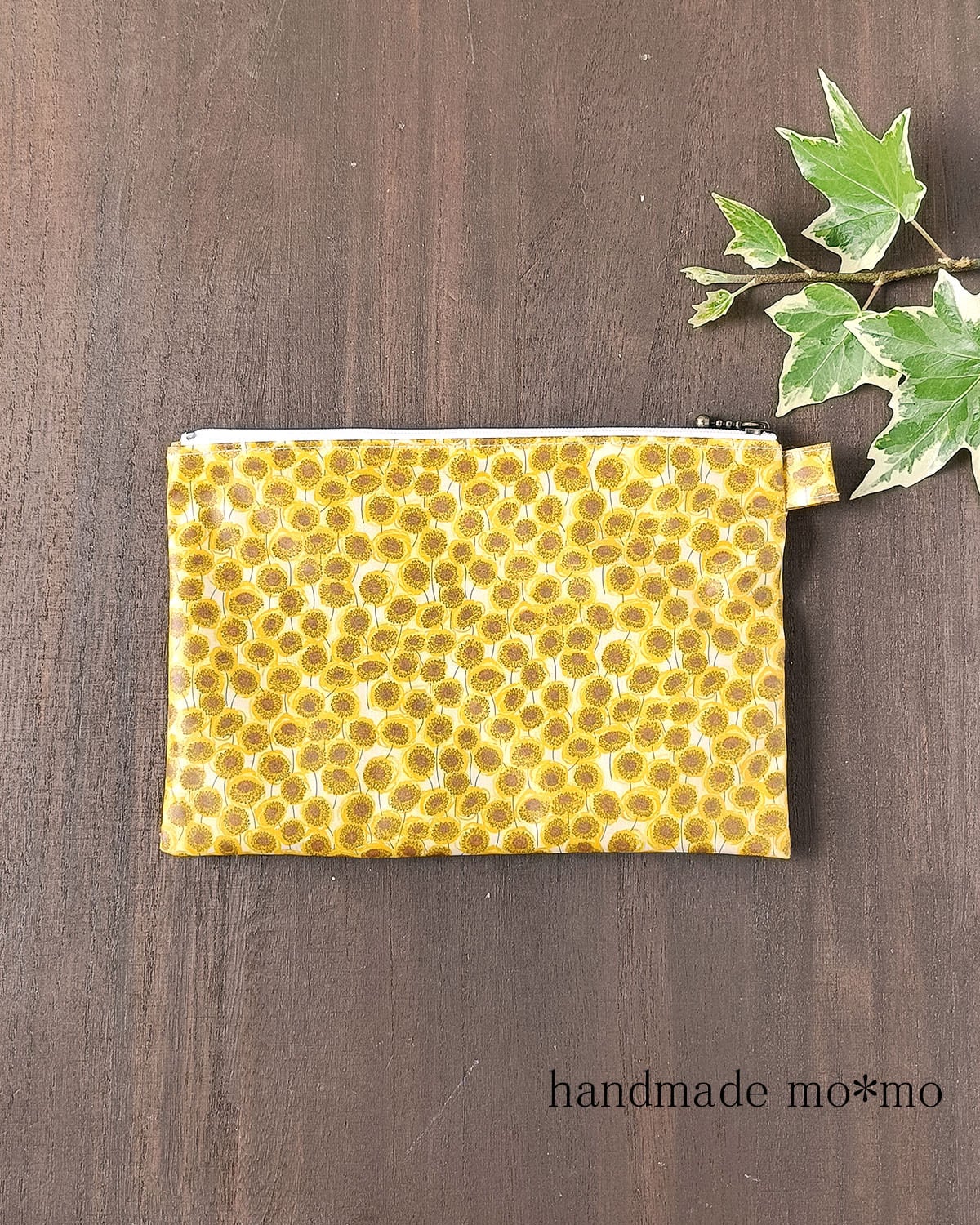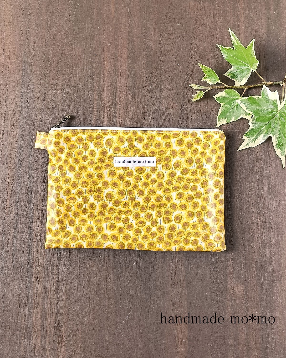 7枚目:3つのサイズのぺたんこポーチを作っています。こちらの作品は真ん中のサイズです。
