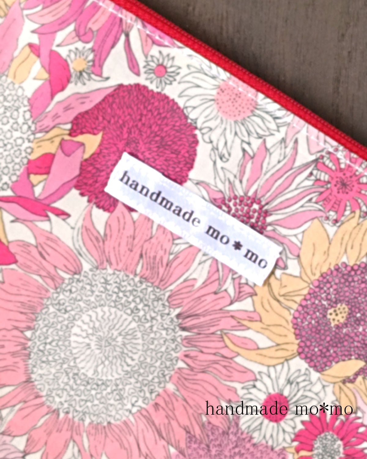ラミネートのリバティ生地を使用。リバティプリント定番の高級素材タナローンに、つや消しでマットなフィルムを貼り付けた、ラミネート生地使用。
