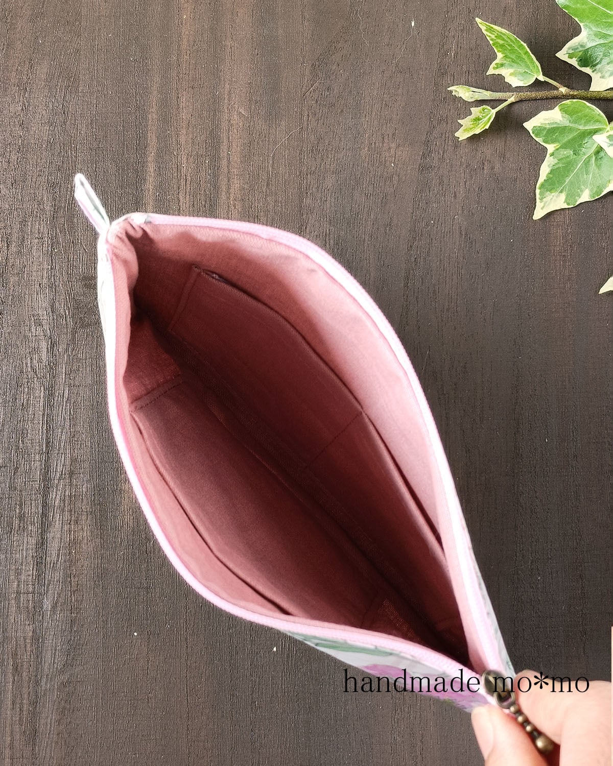 ラミネート生地のポーチは、ほつれない分、内布がついていないものが多いです。