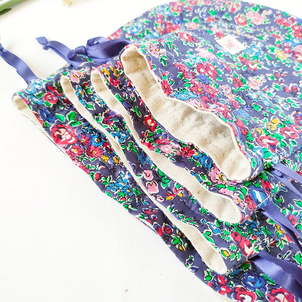 サテンリボンでしぼると、エレガントな雰囲気に仕上がりました。