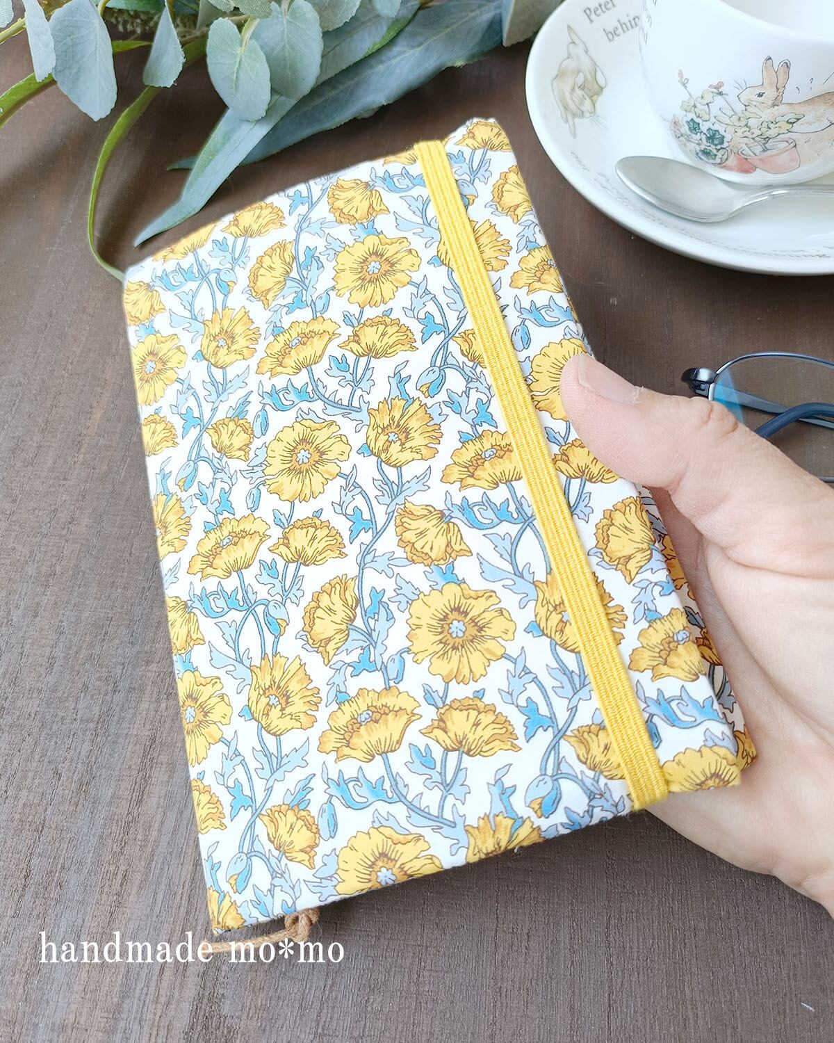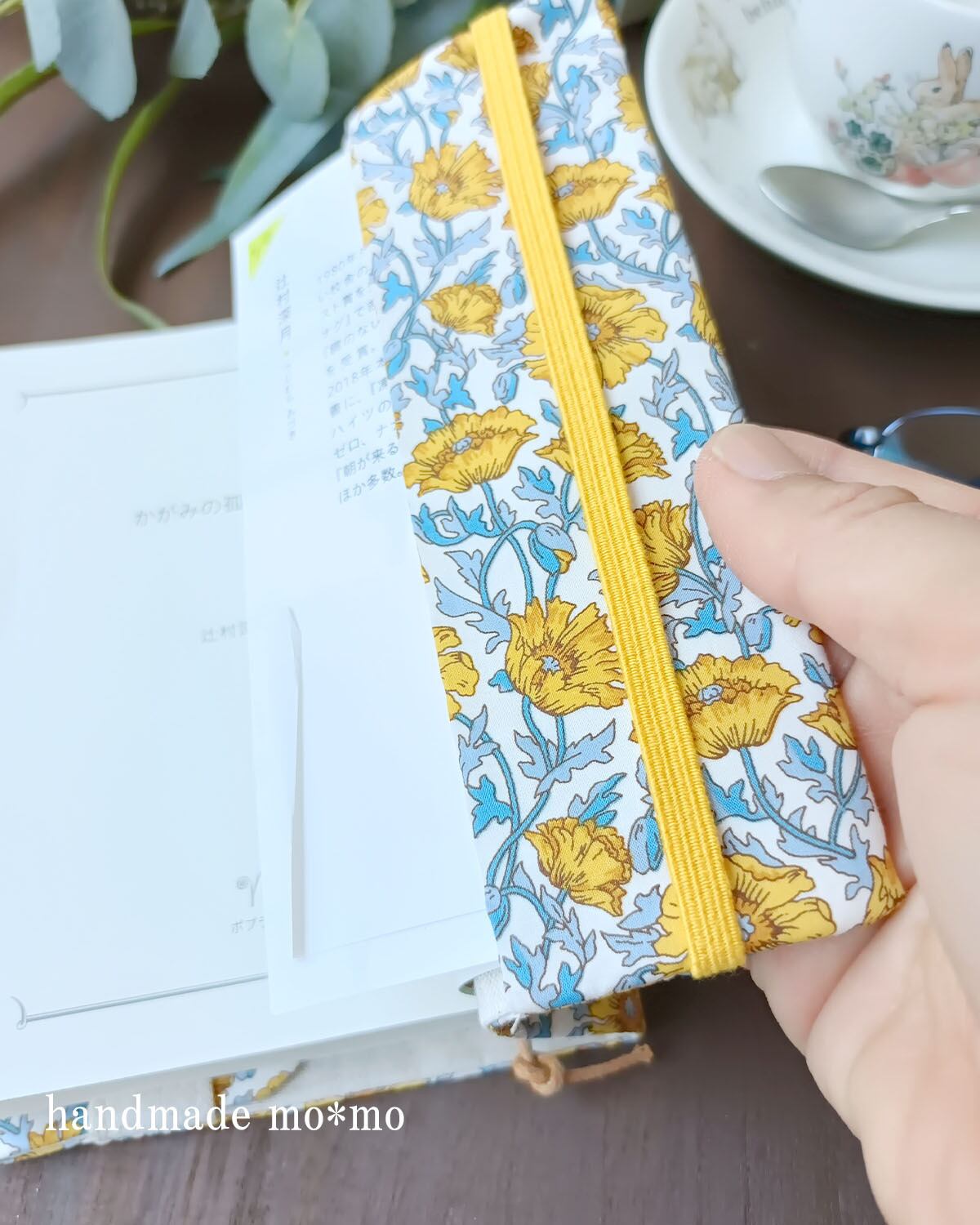 リバティ好きのための、表全面リバティプリントで作った、文庫本用のブックカバーです。