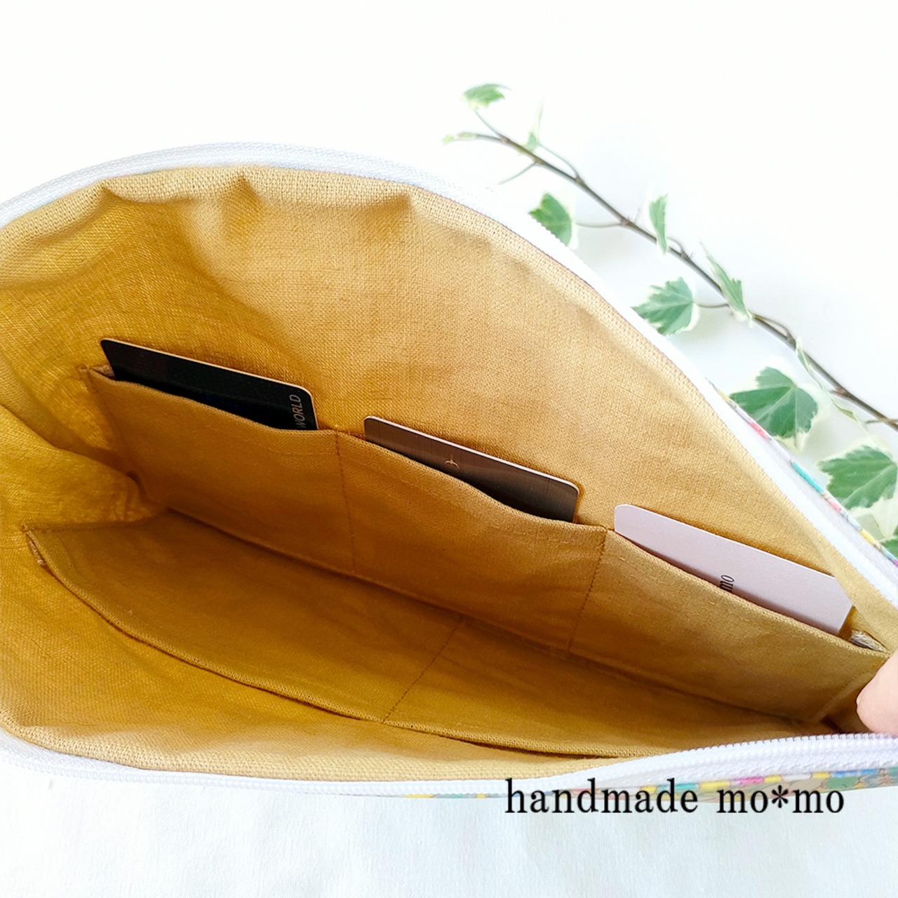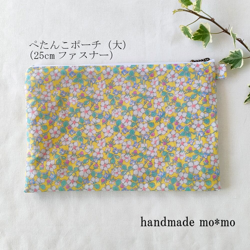 6枚目の画像:3種類のサイズのぺたんこポーチを作りました。こちらの作品は一番大きなサイズです。