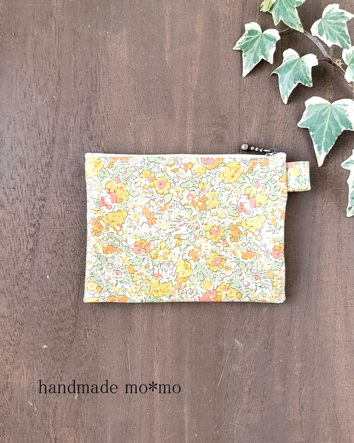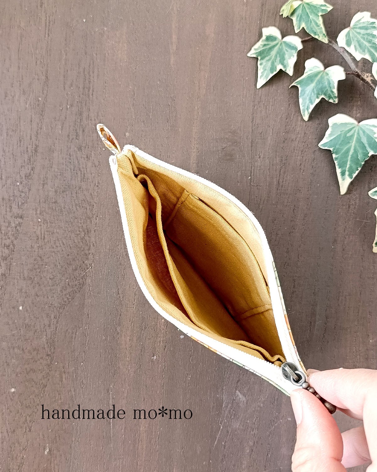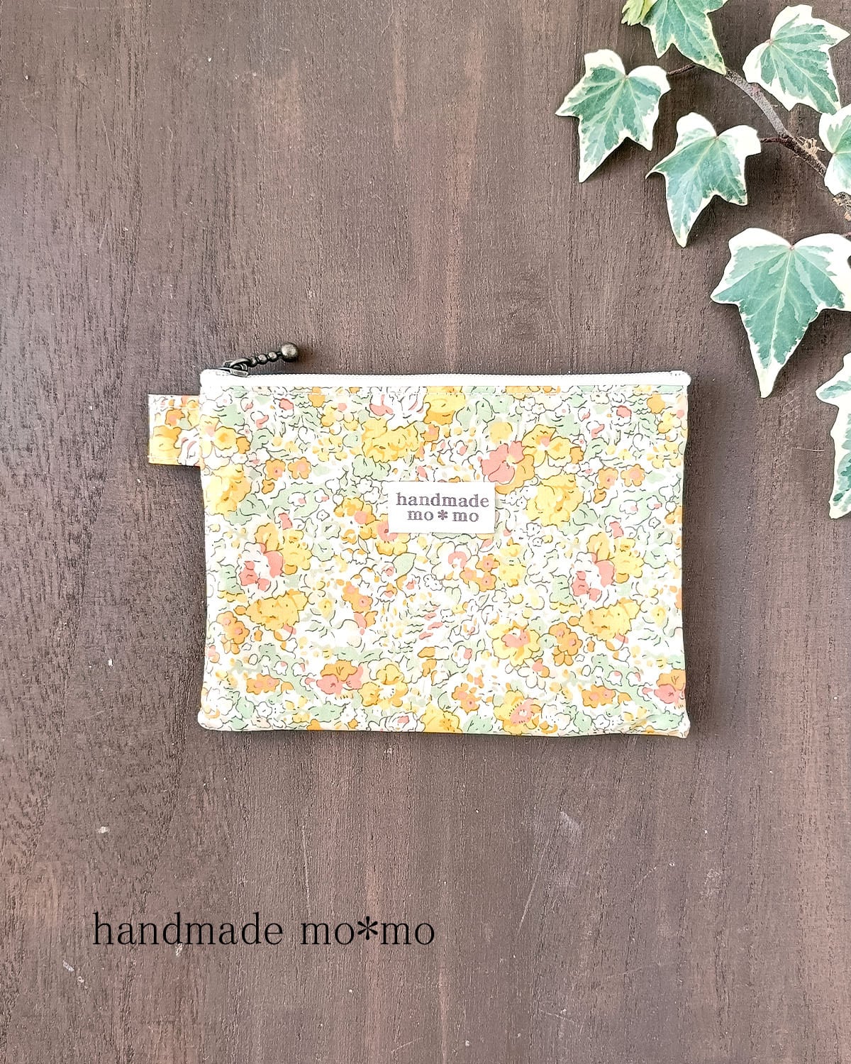 5枚目:3つのサイズのぺたんこポーチを作っています。こちらの作品は一番小さいサイズです。