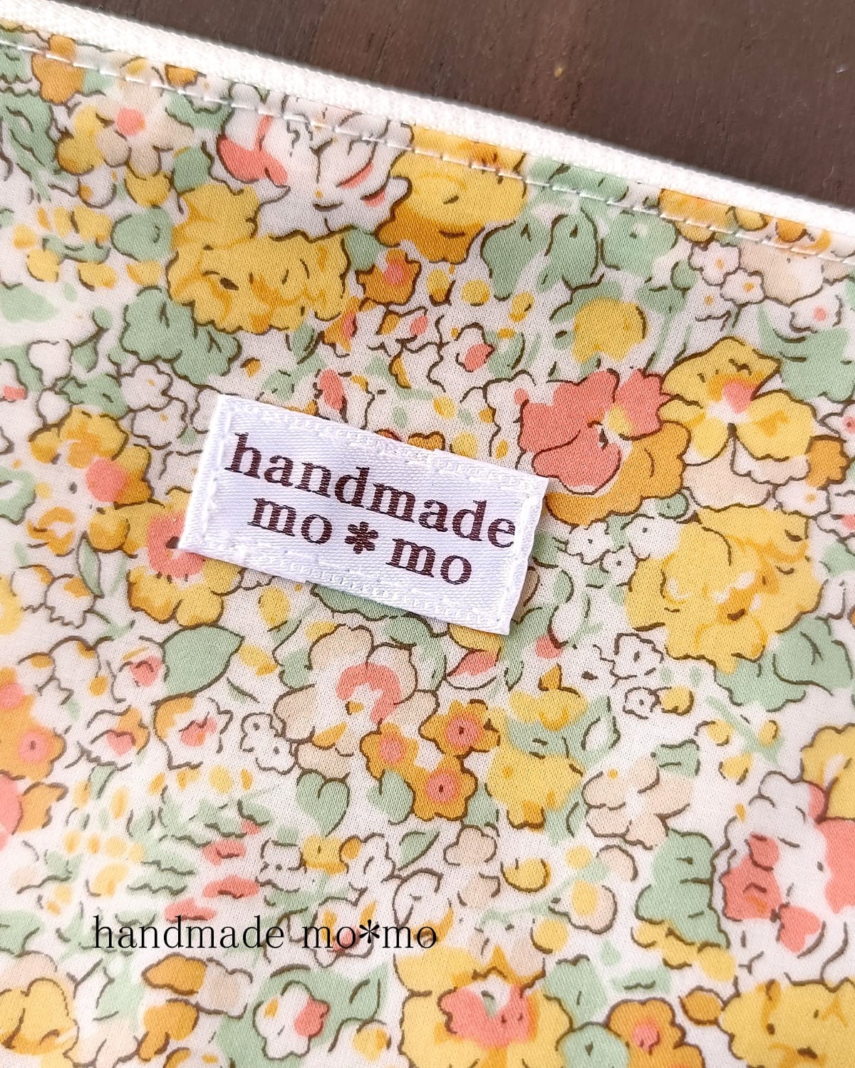 ラミネートのリバティ生地を使用。リバティプリント定番の高級素材タナローンに、つや消しでマットなフィルムを貼り付けた、ラミネート生地使用。