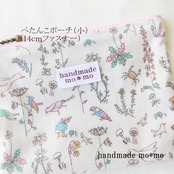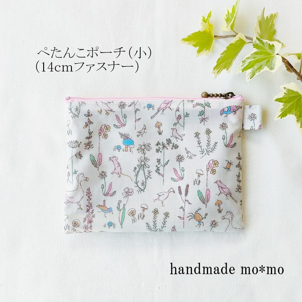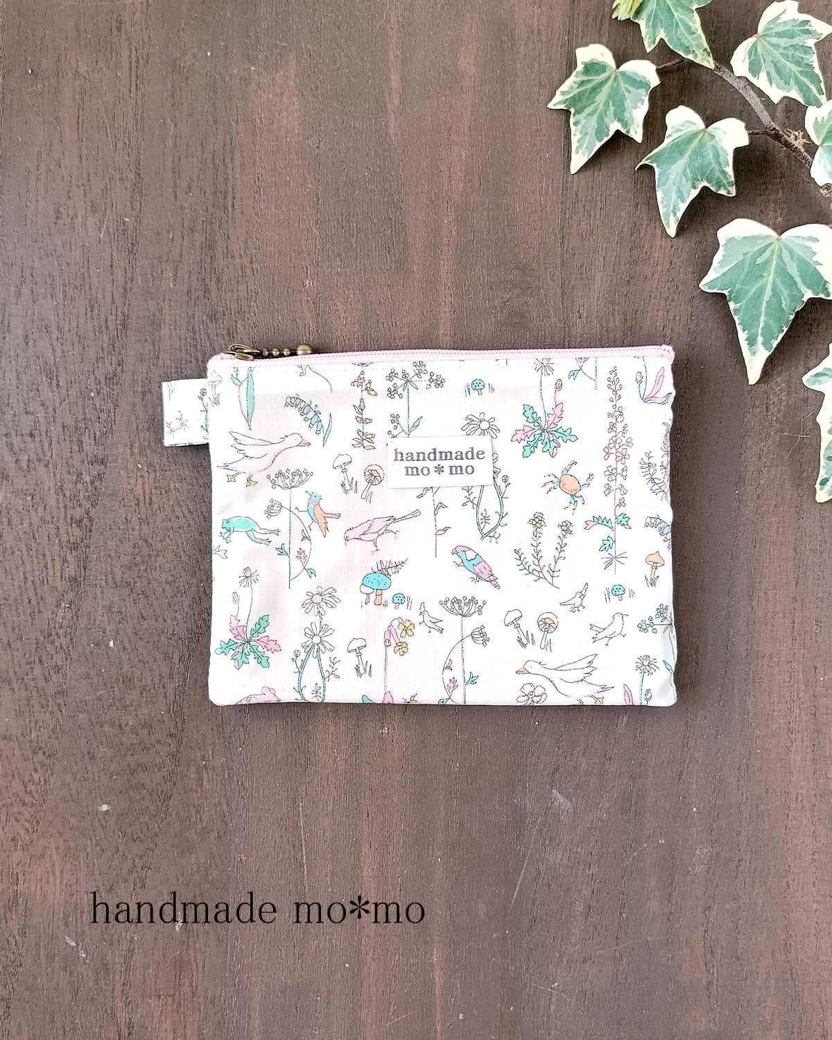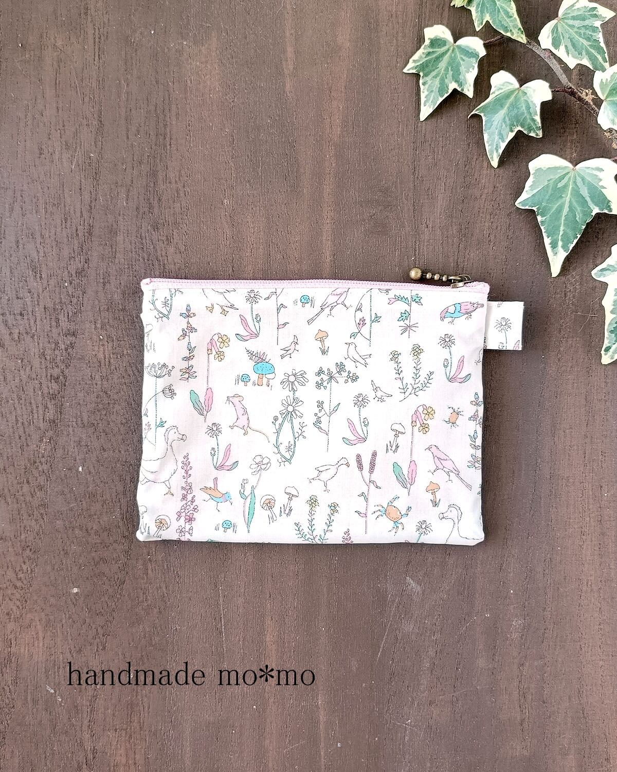 5枚目:3つのサイズのぺたんこポーチを作っています。こちらの作品は一番小さいサイズです。