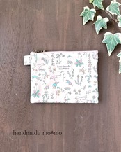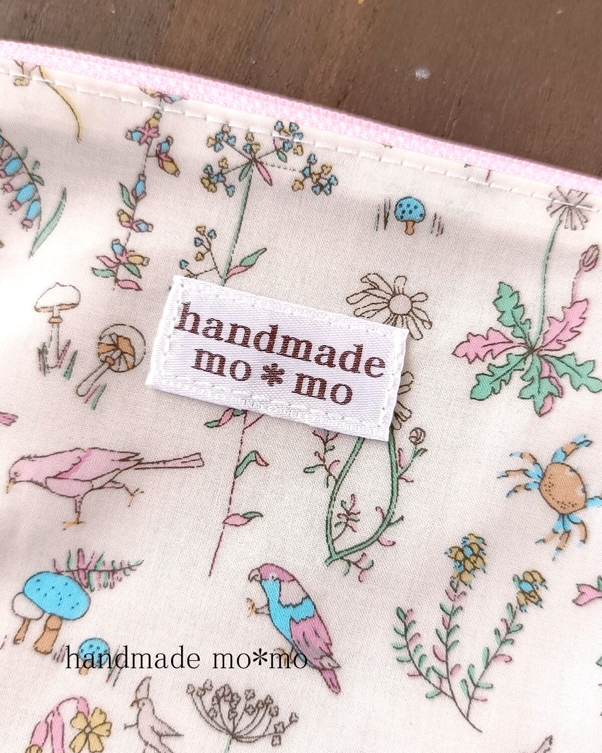 ラミネートのリバティ生地を使用。リバティプリント定番の高級素材タナローンに、つや消しでマットなフィルムを貼り付けた、ラミネート生地使用。