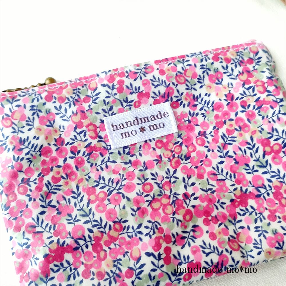 ラミネートのリバティ生地を使用。リバティプリント定番の高級素材タナローンに、つや消しでマットなフィルムを貼り付けた、ラミネート生地使用。
